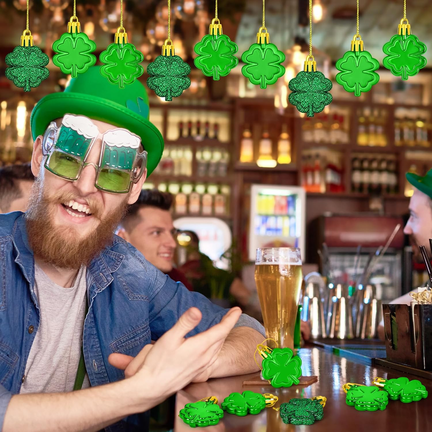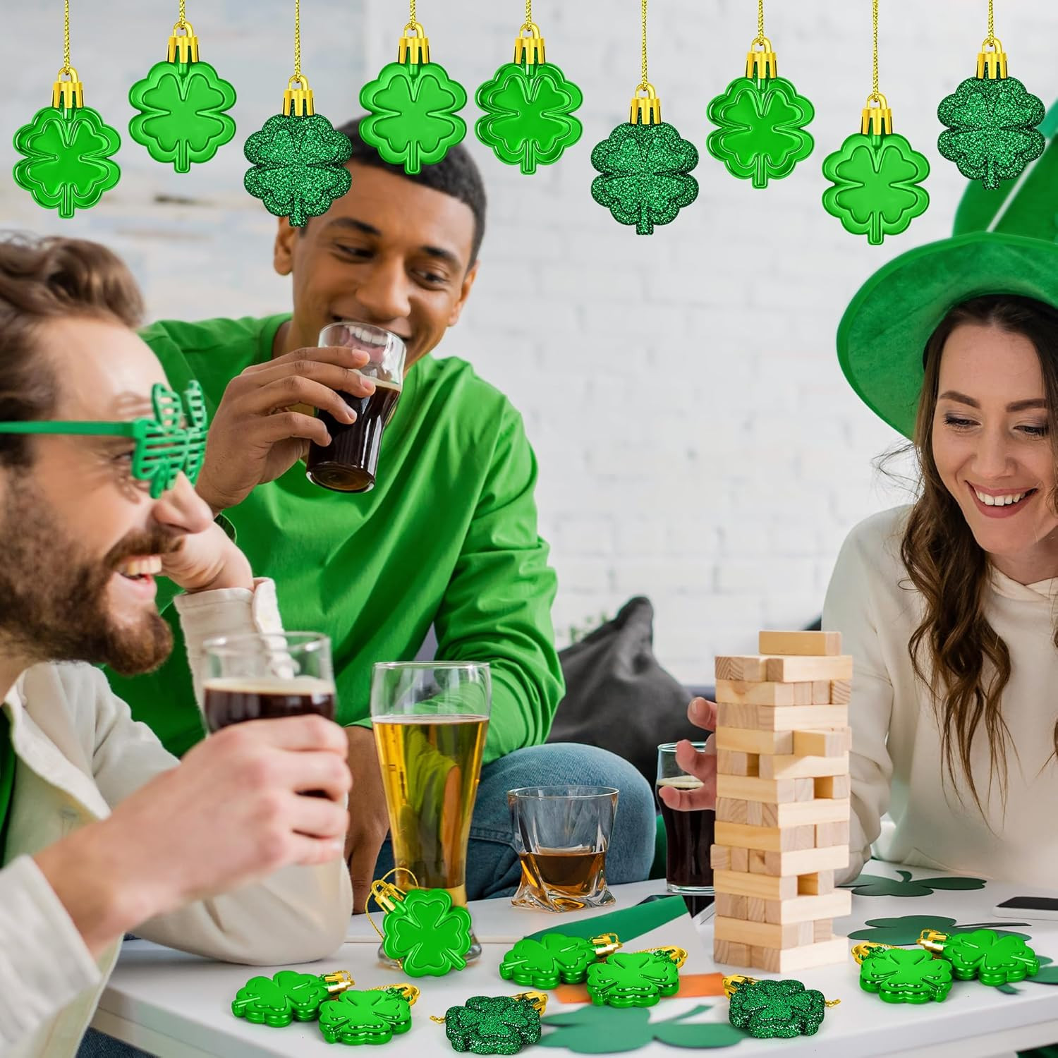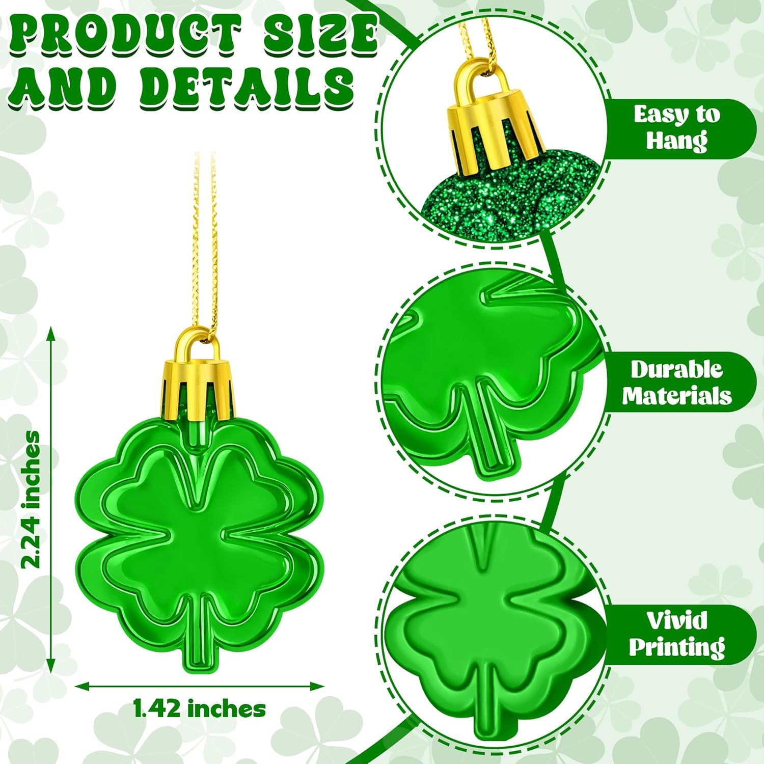 как выглядит 24 PCS St Patricks Day Ornaments for Tree, Hanging Four Leaf Clover Irish Lucky фото