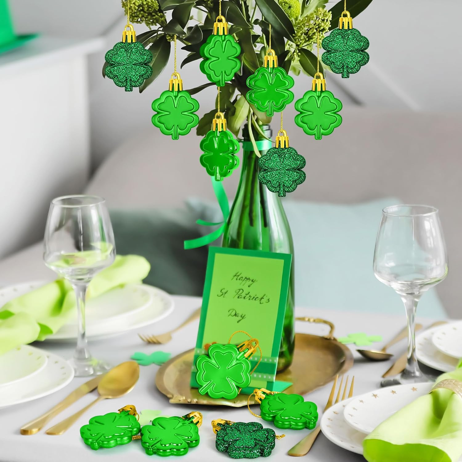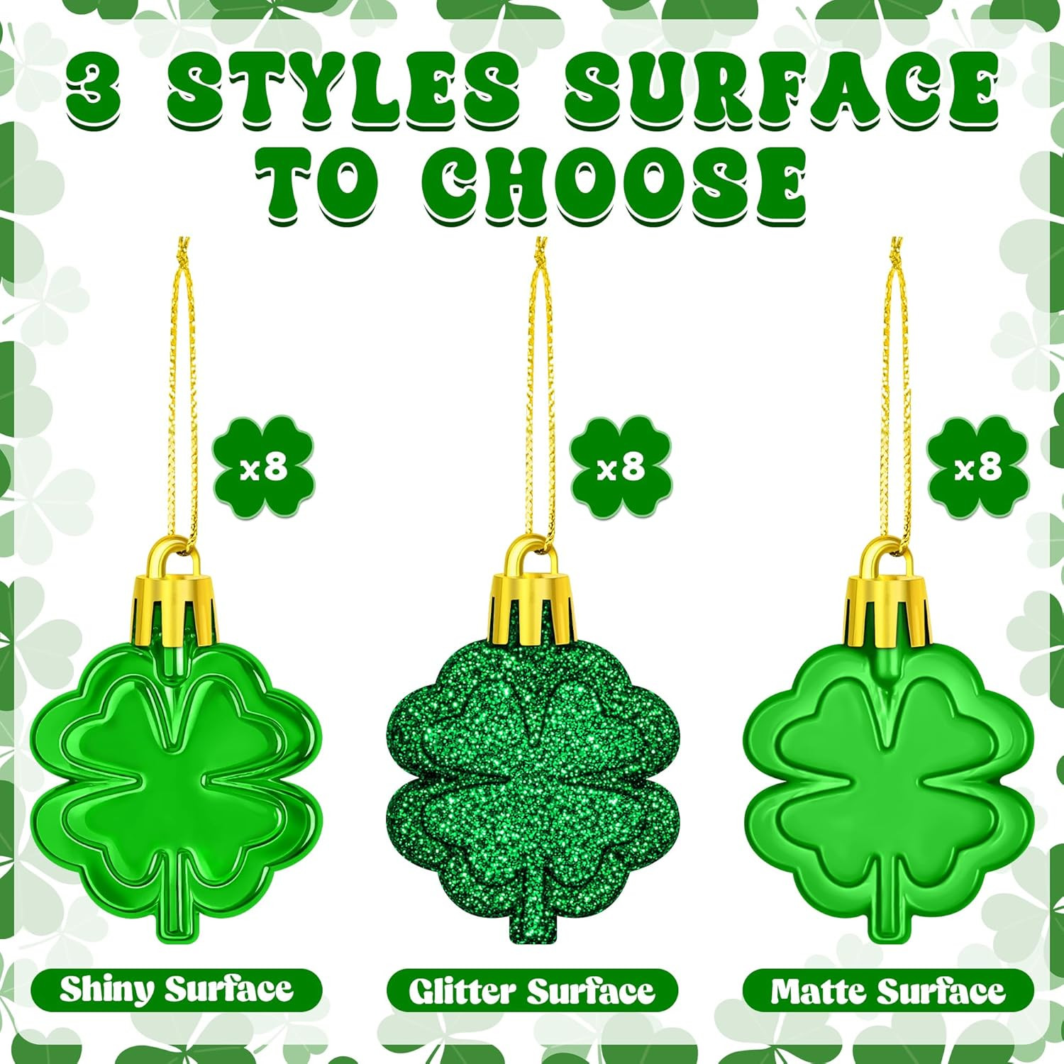 24 PCS St Patricks Day Ornaments for Tree, Hanging Four Leaf Clover Irish Lucky
