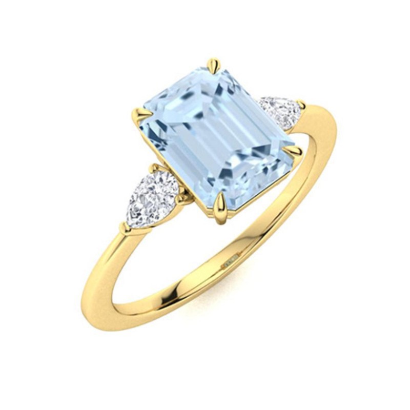 Aquamarine Gemstone Sterling Silver Three-Stone Throat Chakra Ring Jewelry