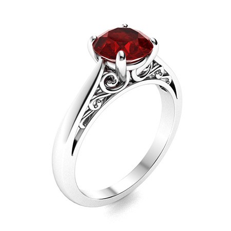 Sterling Silver Round Garnet Gemstone Engagement Prong Solitaire Ring