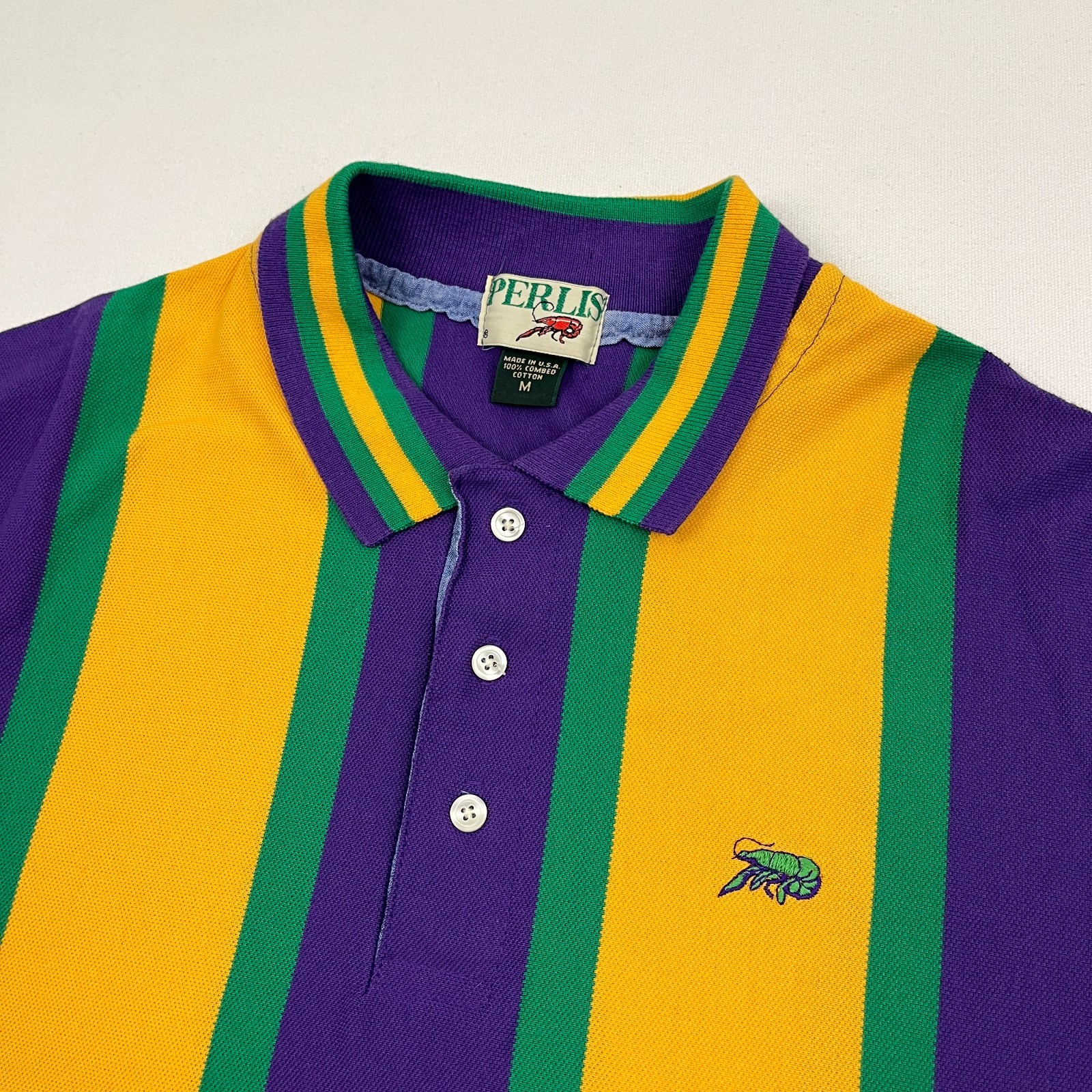 VTG Perlis Polo Shirt Mens M Multi Striped New Orleans Mardi Gras Cajun USA 90s