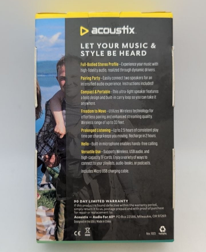Acoustix Mini Bluetooth Speaker Wireless Portable Stereo Audio Black Hands Free