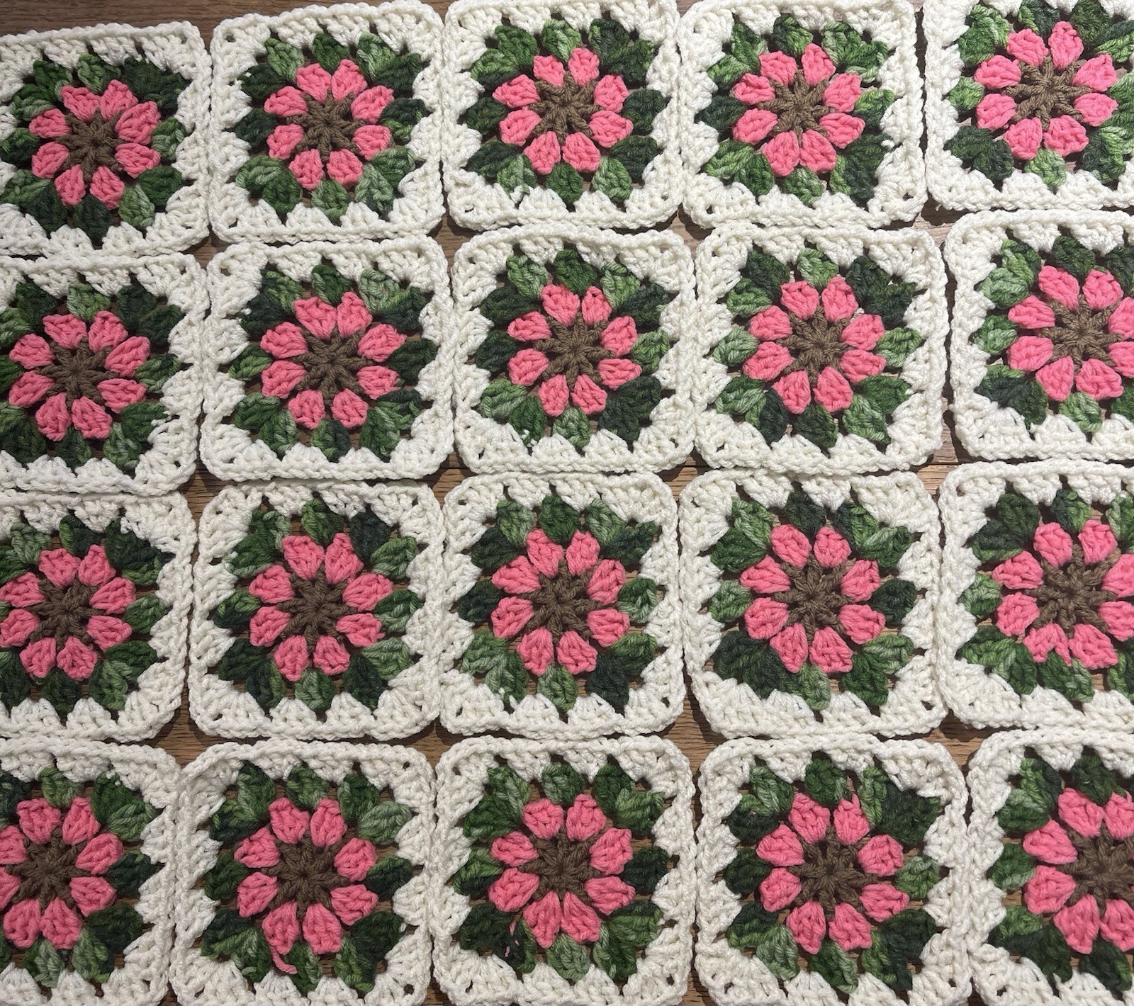 SALE 17.97 Was 25.00 Lot Of 20 5 Flower Crochet Granny Square Blocks Afghan