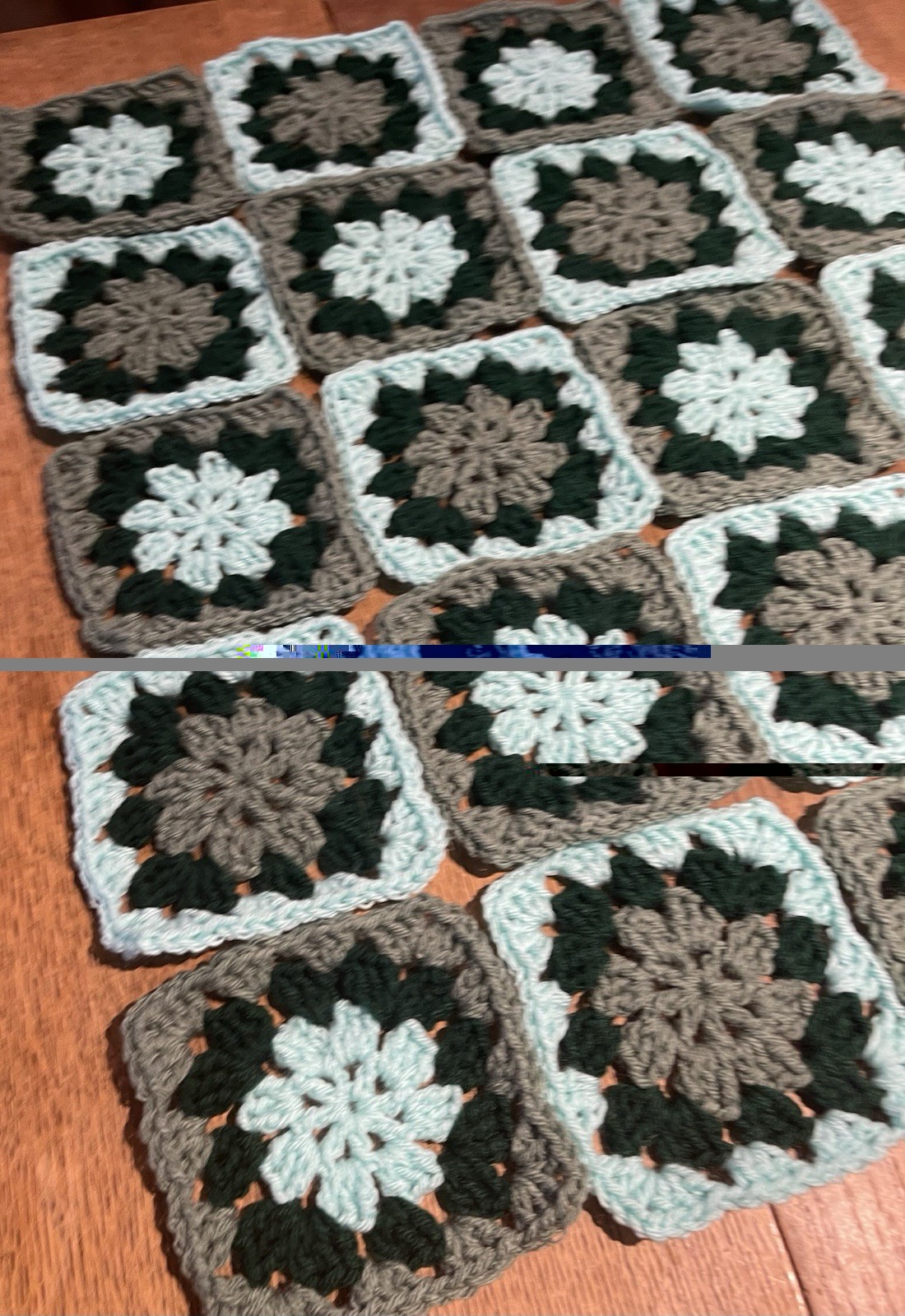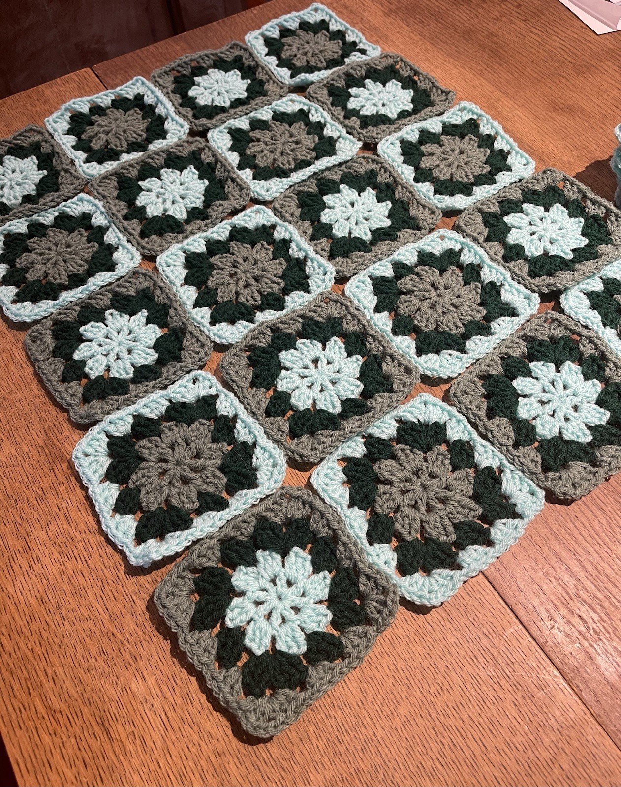 как выглядит Lot Of 20 5 Sage Green Tourquoise DarkGreen Granny Square Blocks Afghan фото