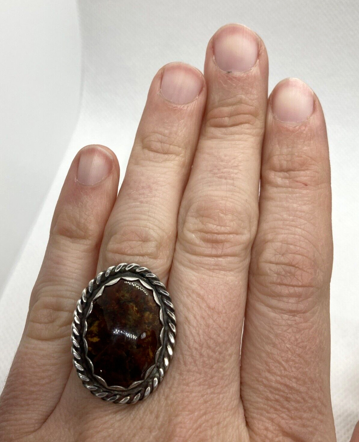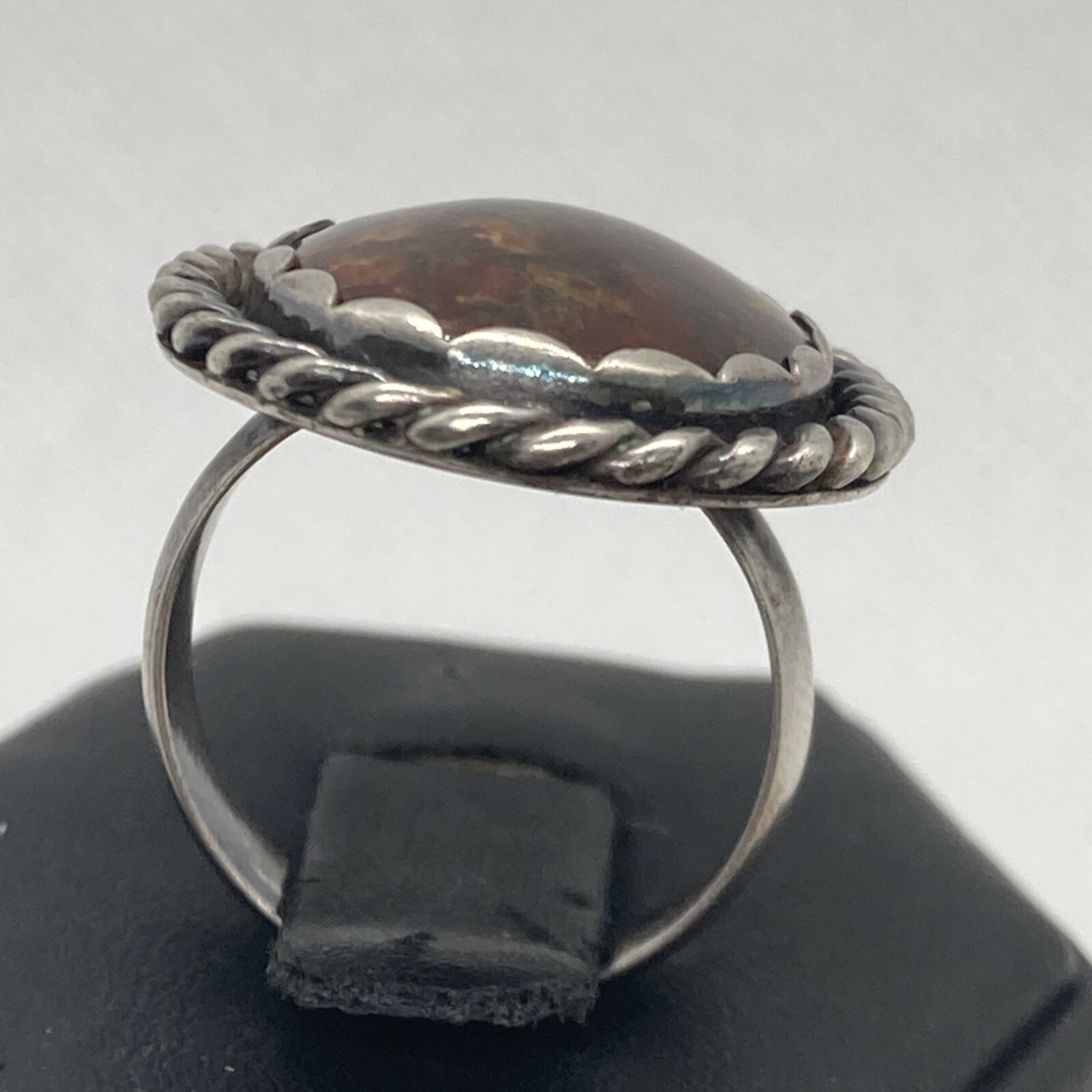 как выглядит Vintage SW Style Brown Natural Jasper Ring Size 6 Sterling Silver 925 Ring 7.8g фото