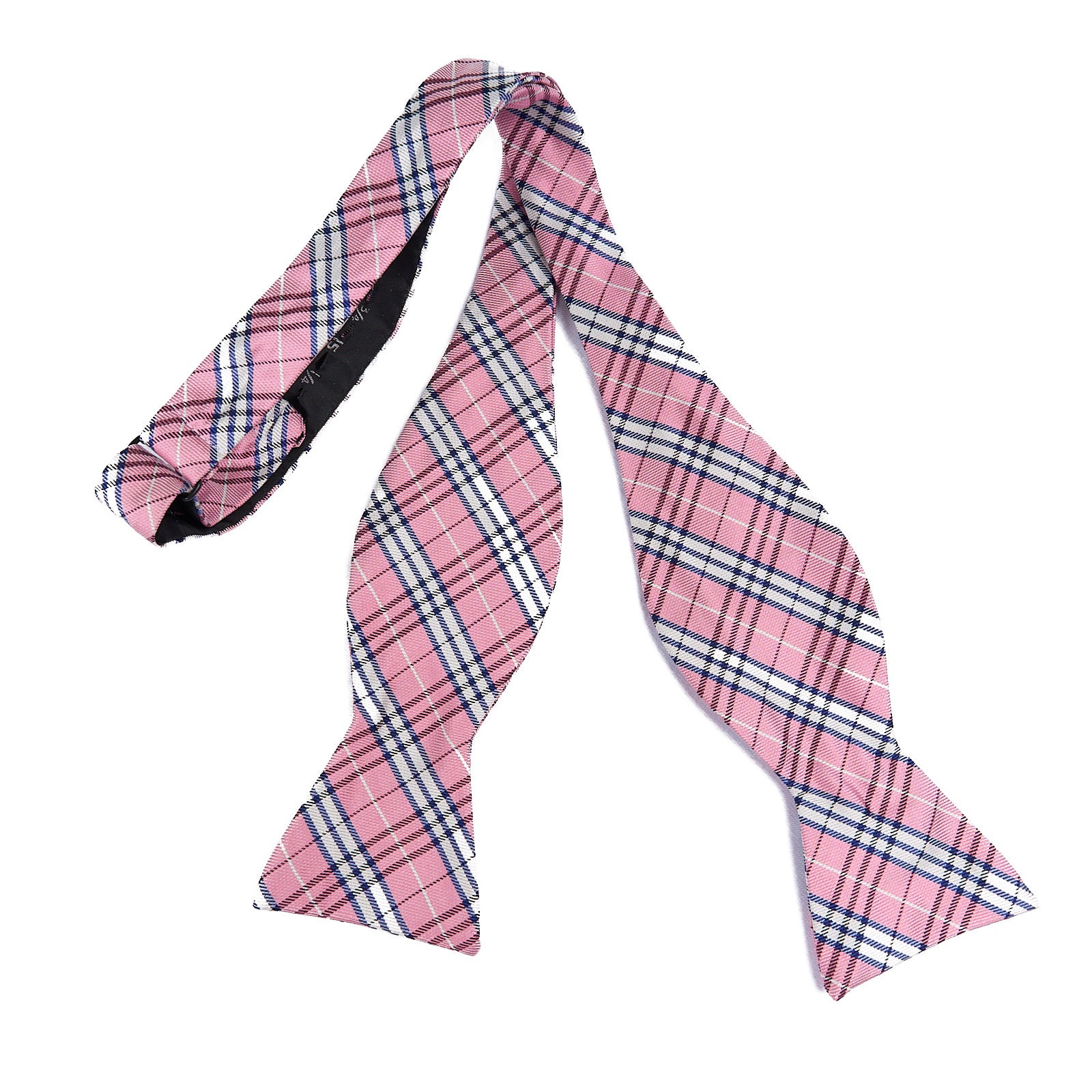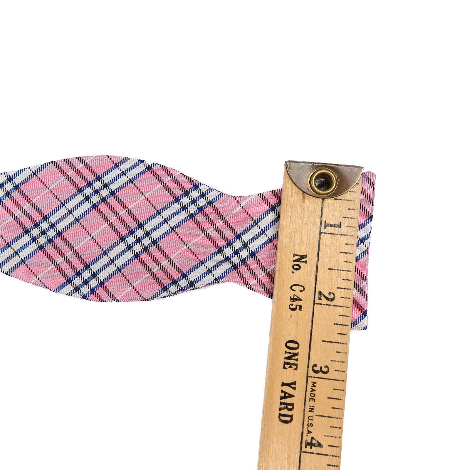 Brooks Brothers Silk Bow Tie Pink Blue Plaid Self Tie