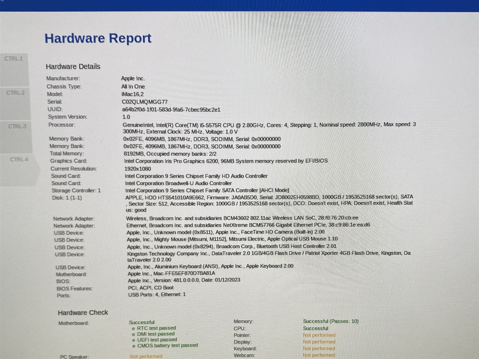 Apple iMac 16,2 A1418 21.5 AIO Core i5-5575R 2.80GHz CPU 8GB 1TB HDD Monterey