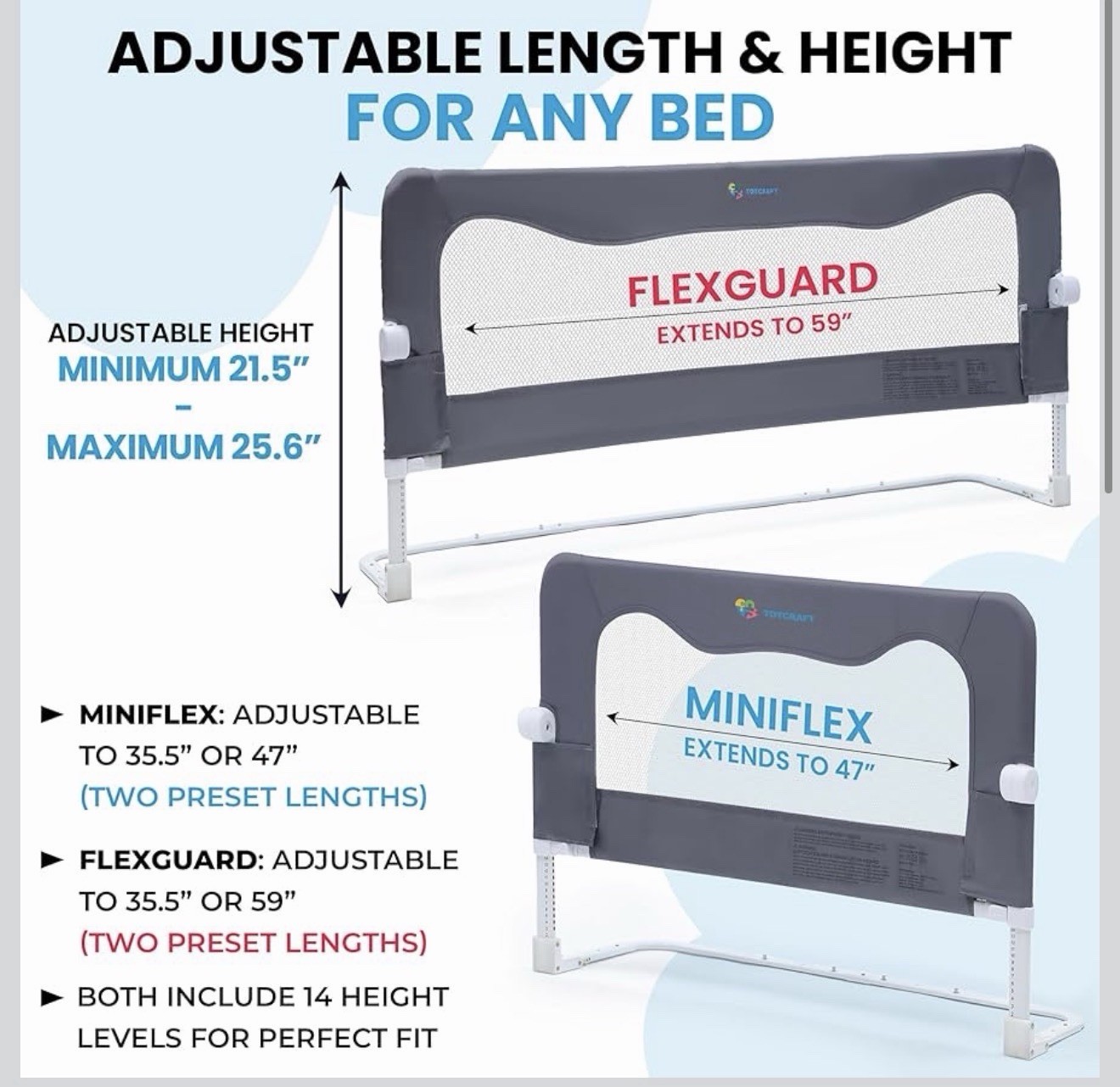 TotCraft Flexguard Adjustable Bed Rail Toddler Twin, Full, Queen, King