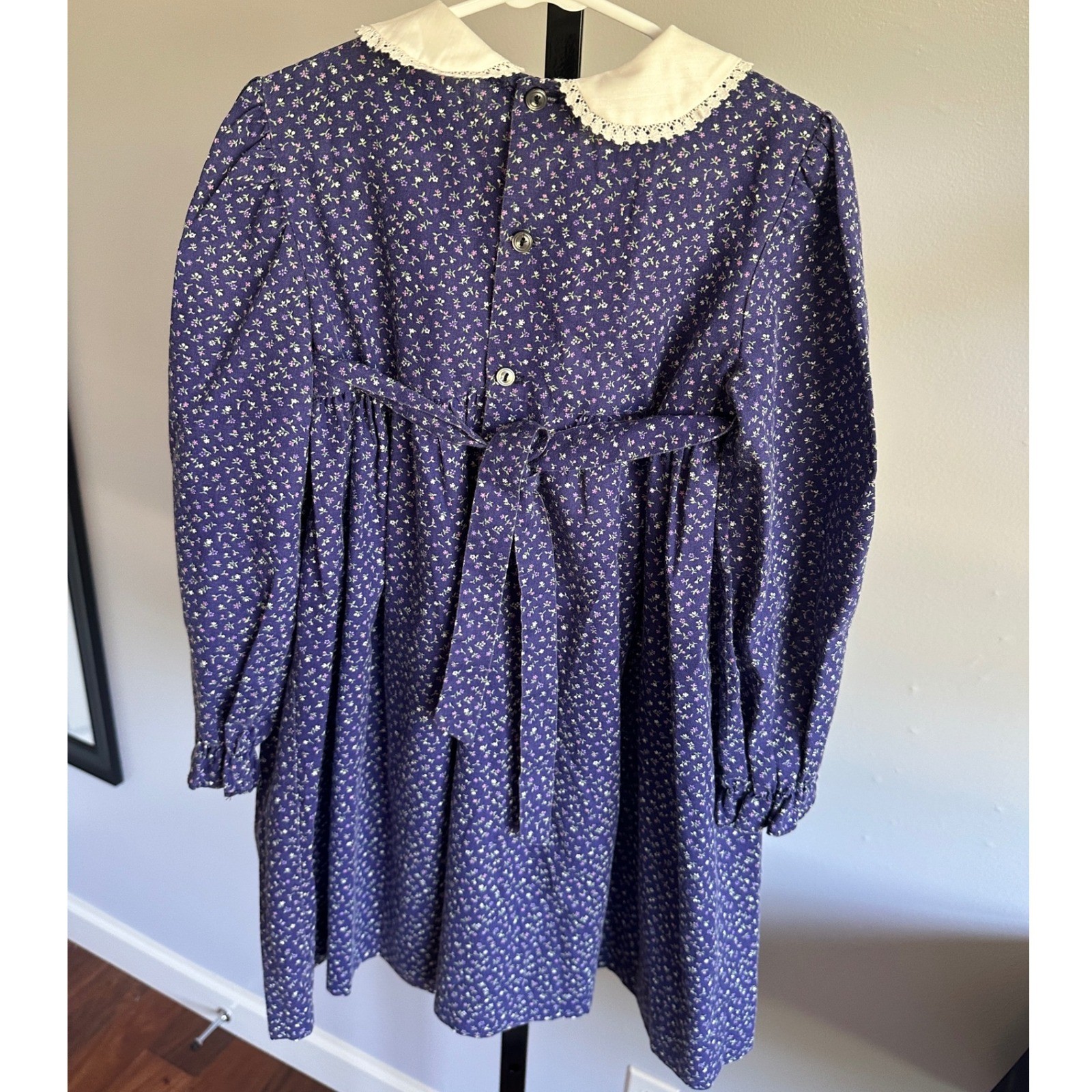 как выглядит Vintage Polly Flinders Dress Girls Purple Floral Smocked Peter Pan Collar фото
