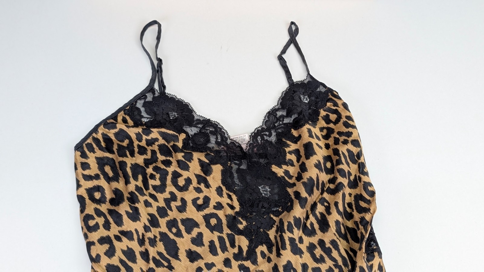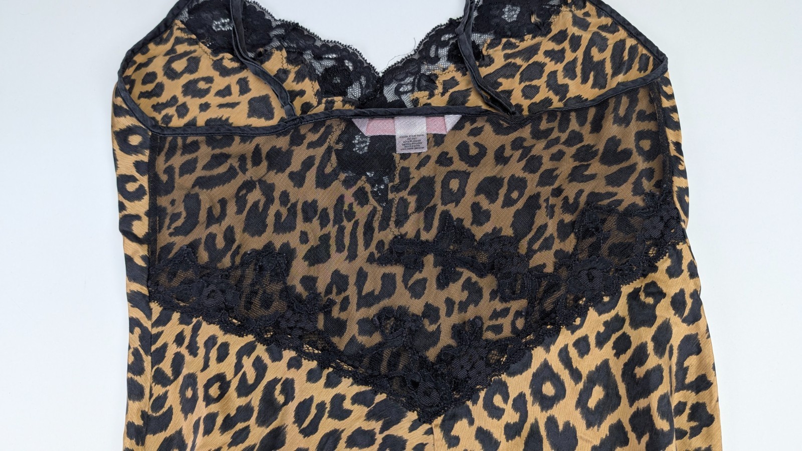 как выглядит Victorias Secret Leopard Print Slip Dress Lace Trim Satin Chemise Small Nightie фото