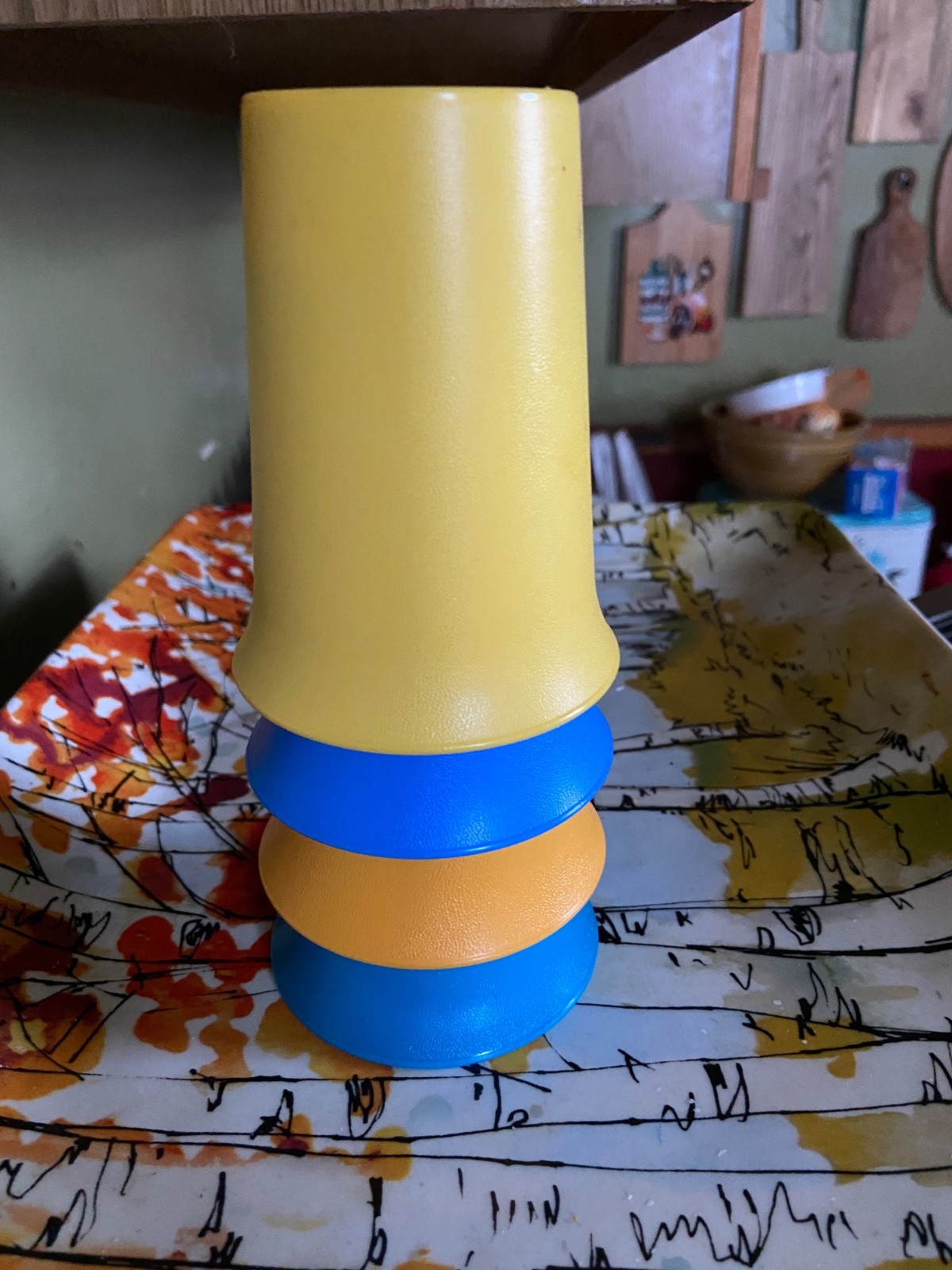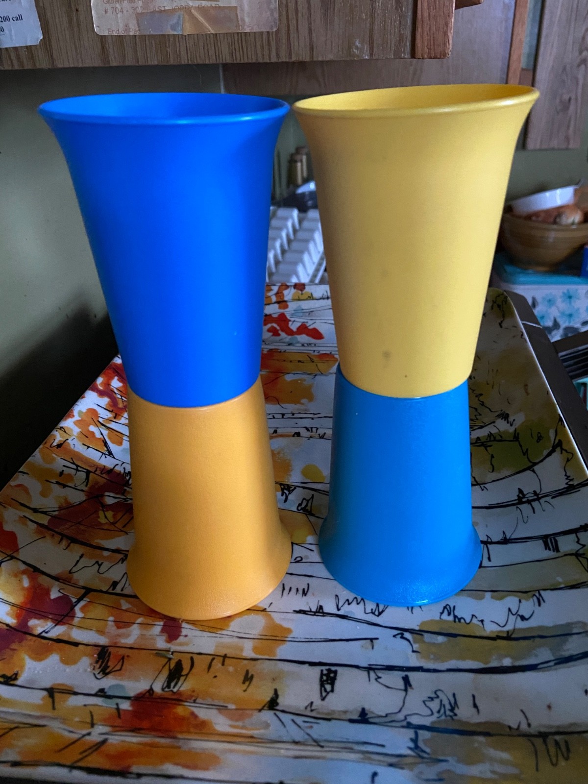 как выглядит Vintage 4 Tupperware Kids Tumblers Cups 7oz 2 Blue 2 Yellow Retro EUC фото