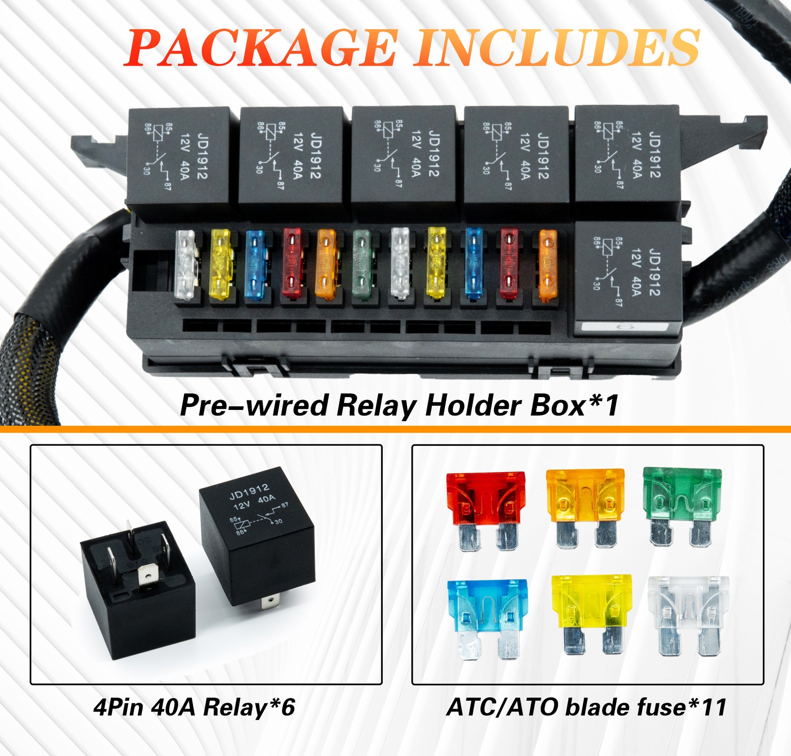 12V 6-Way Relay Fuse Box Pre-Wired 6 Slot ATC/ATO Fuse Universal Relay Panel US