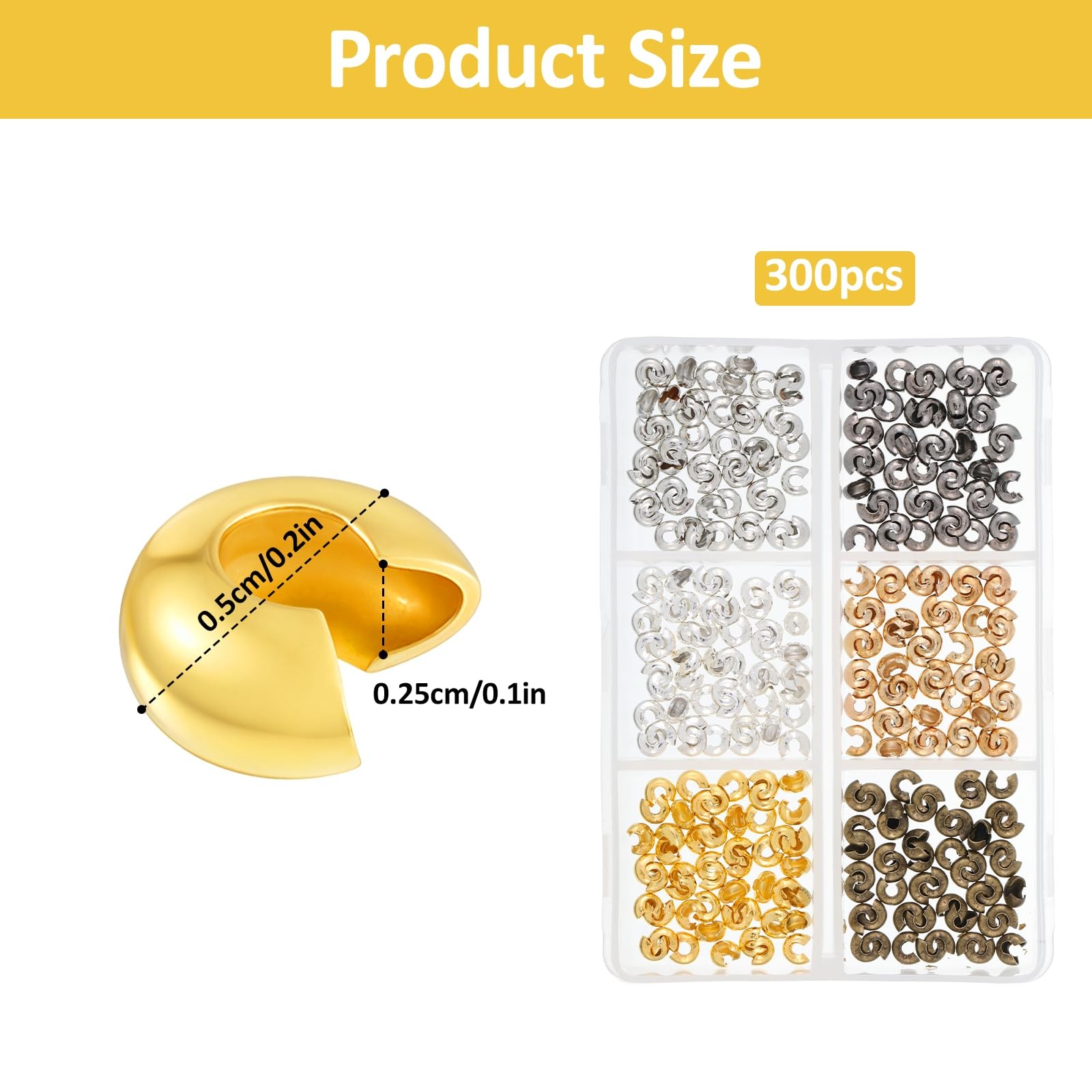 300 PCS Crimp Bead Covers, 0.2In/5Mm Crimp Beads Half round Open, Crimps Cover f