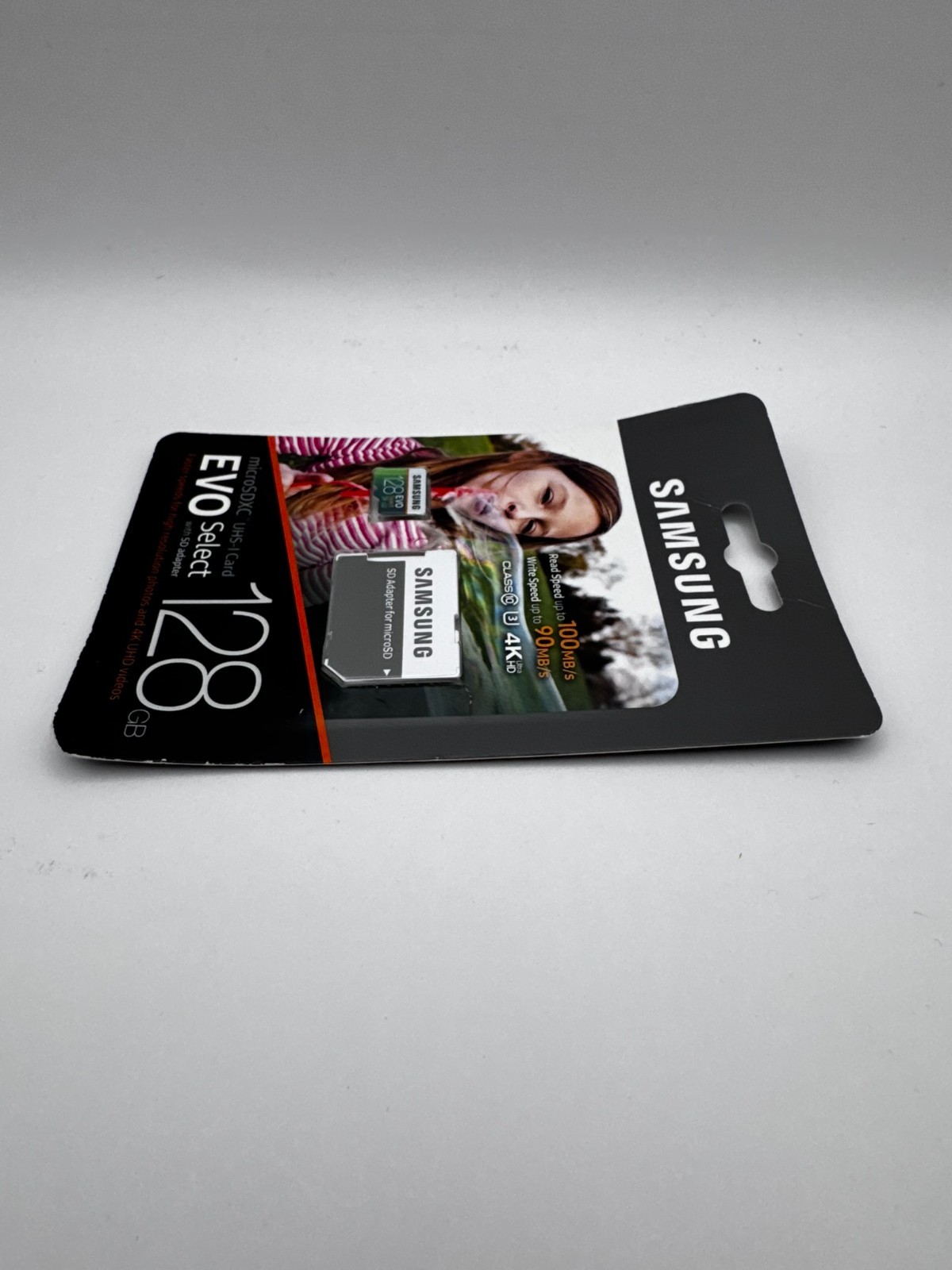 как выглядит SAMSUNG 128GB 100MB/s MicroSDXC EVO Select Memory Card with Full-Size Adapter фото
