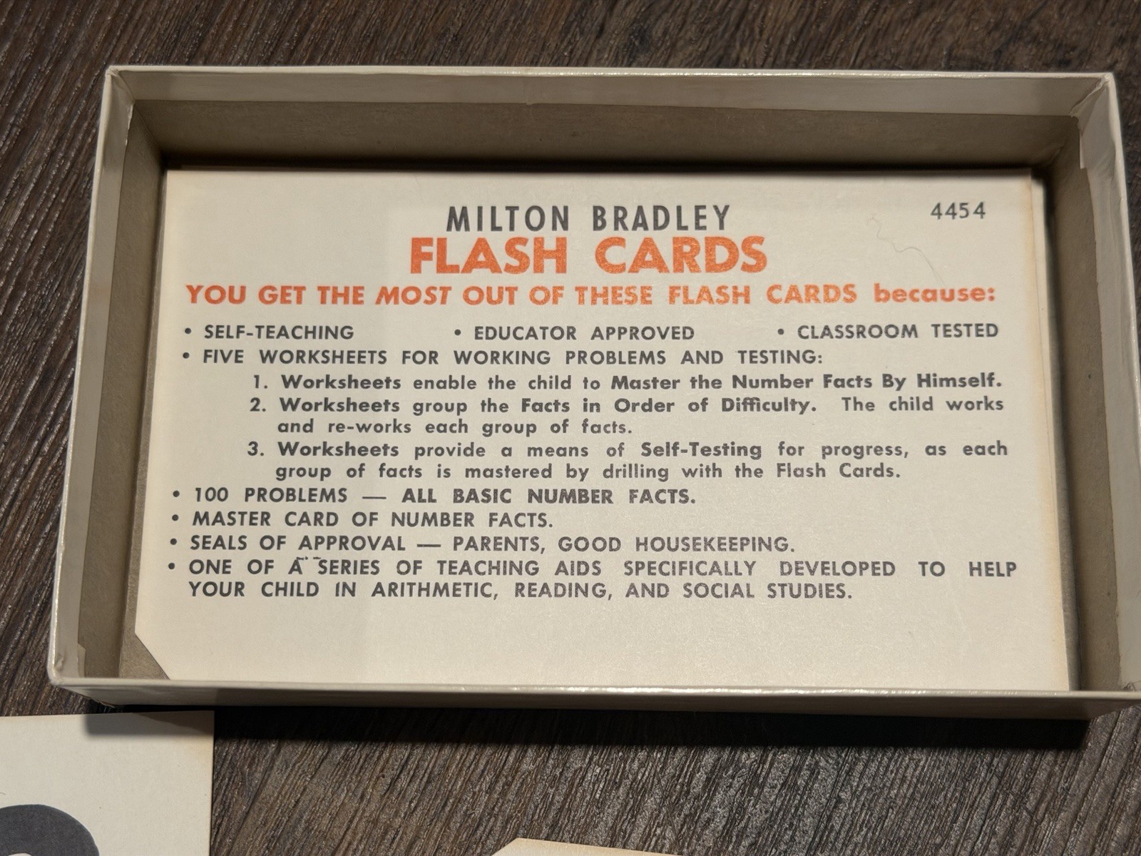 VINTAGE 1975 MILTON BRADLEY FLASH CARDS MULTIPLICATION IN ORIGINAL BOX 4454 MB