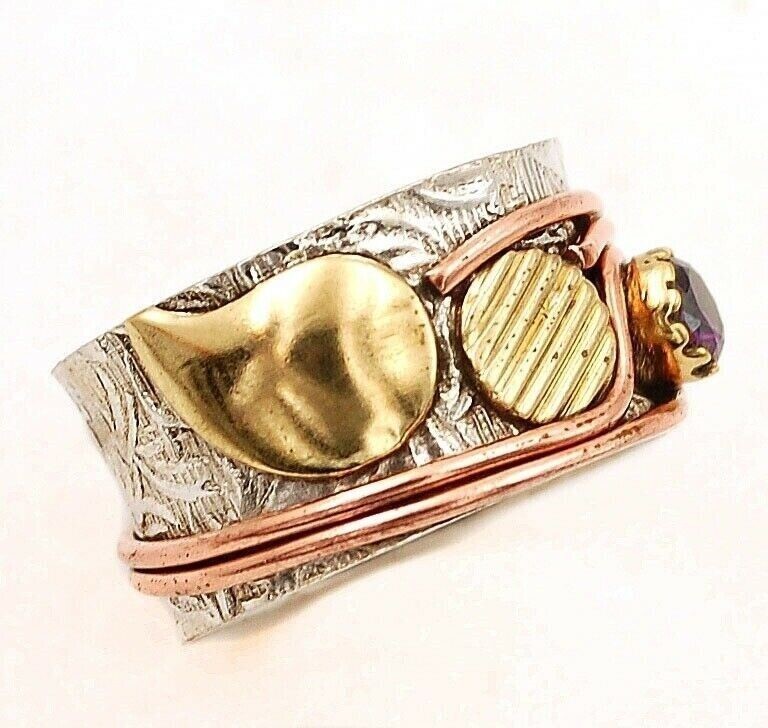 как выглядит Natural Three Tone- Amethyst 925 Solid Sterling Silver Ring Sz 7, фото