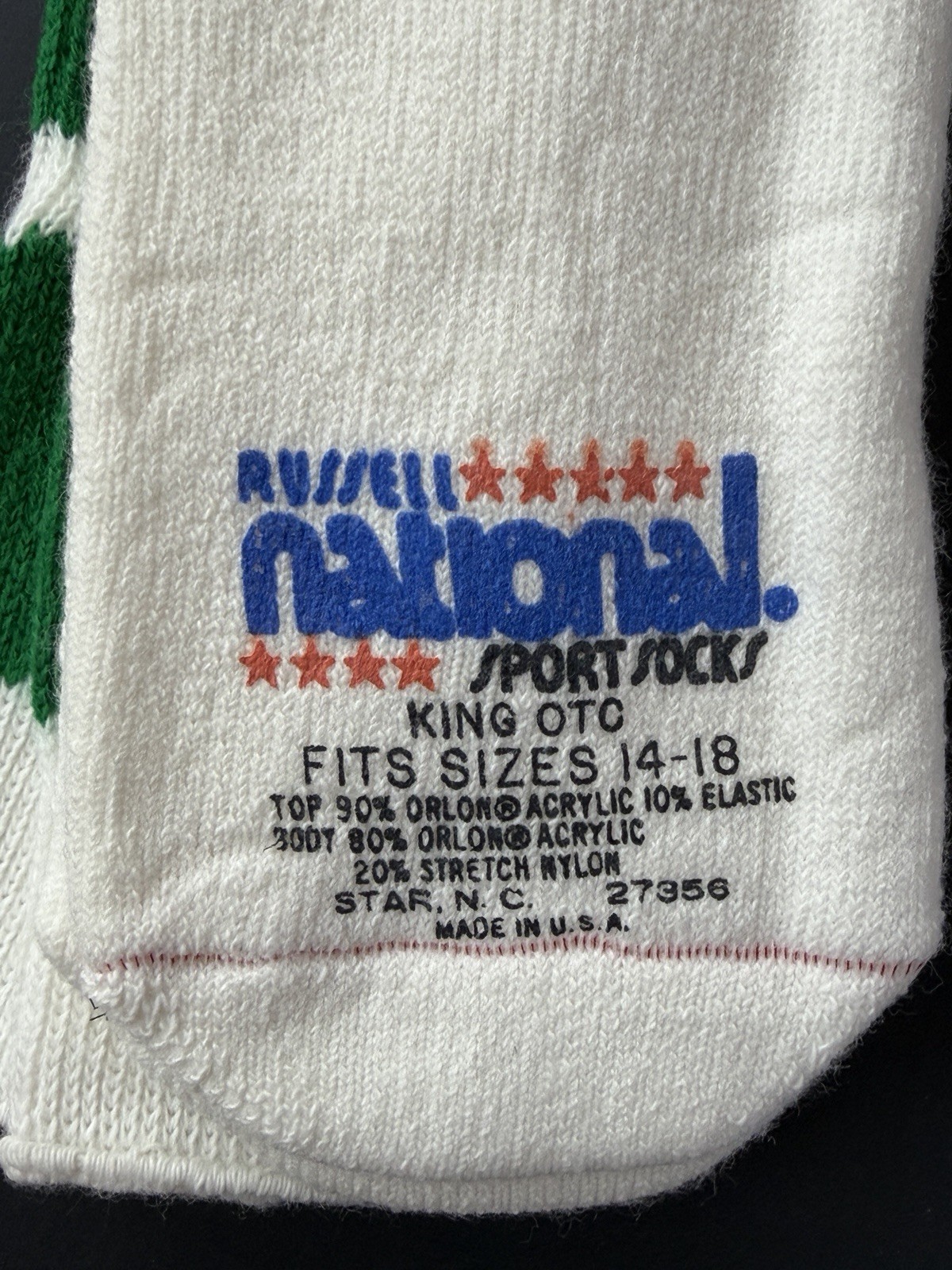 Vintage 80's NOS NWT Russell National Sport Tube Socks 2 Stripe Green 14-18 USA