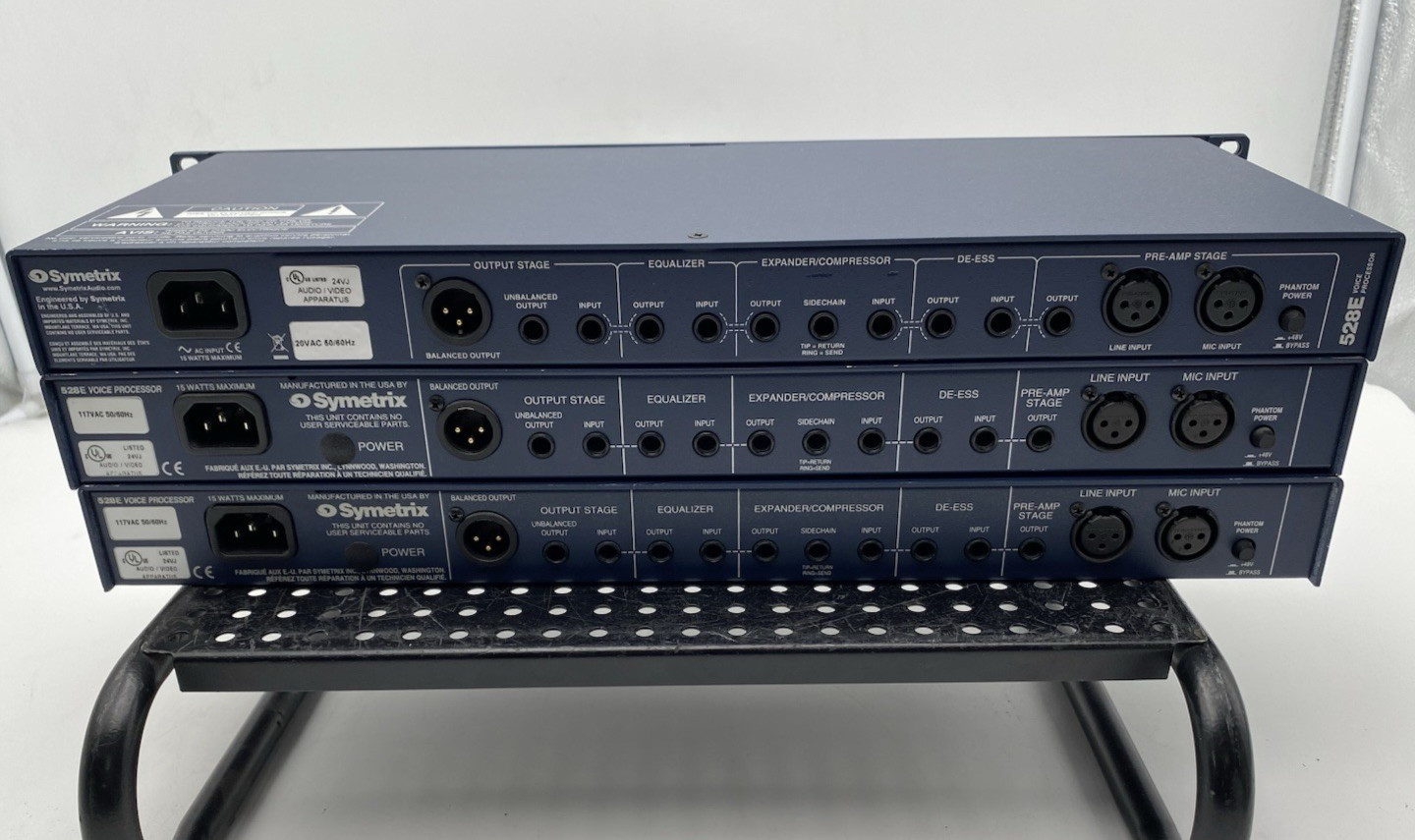 Lot of 3 Symetrix 528E .110 to 230v .CHANNEL STRIP: MIC PREAMP, COMPRESSOR,