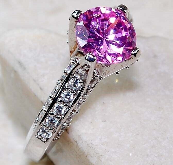2CT Treated Pink Sapphire Topaz 925 Solid Sterling Silver Ring Sz 6 UB4-1