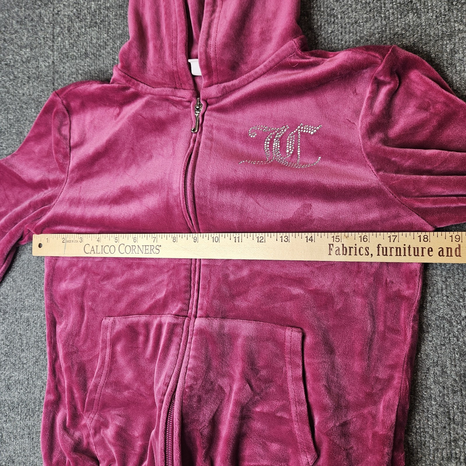 Juicy Couture Velour Zip Front Hoodie Fuchsia Pink Rhinestone Size Small