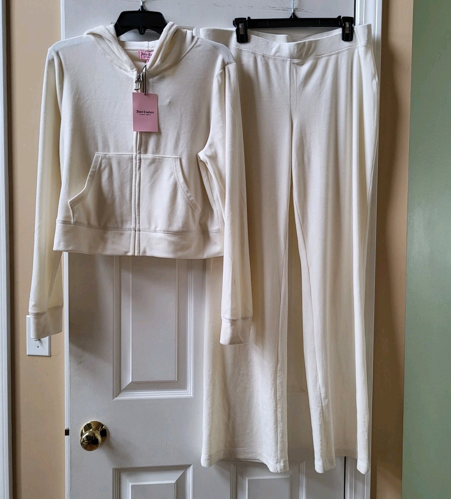 Juicy Couture Velour Bling Oyster White Tracksuit Set hoodie pants Size XL NWT