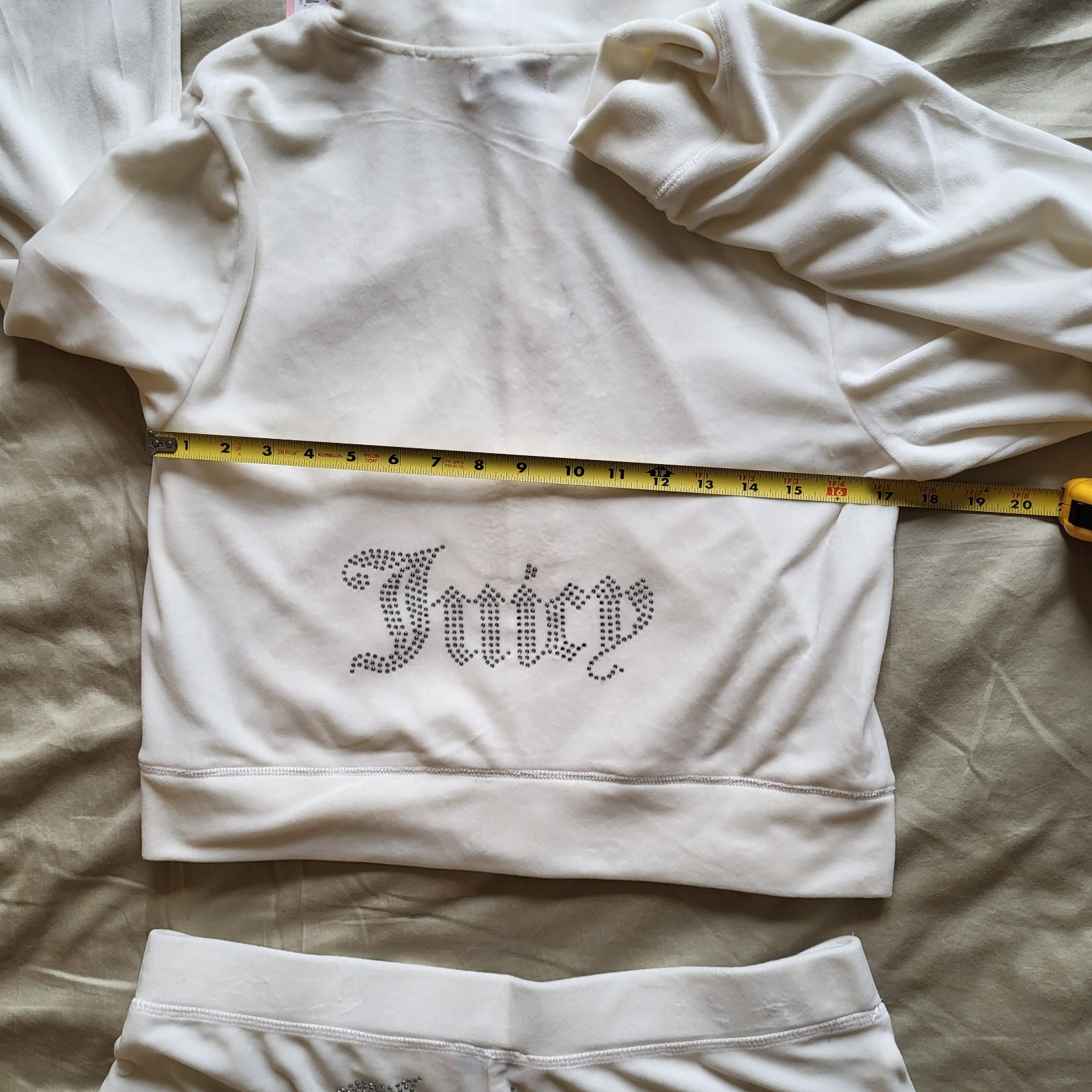 как выглядит Juicy Couture Velour Bling Oyster White Tracksuit Set hoodie pants Size XL NWT фото