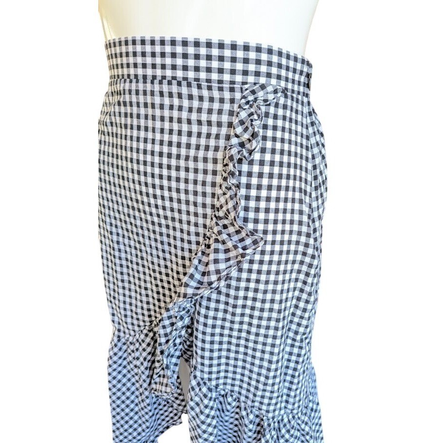 как выглядит Gingham Ruffle Skirt S Slit Midi Cute Twee Prairie Country Cottagecore Milkmaid фото