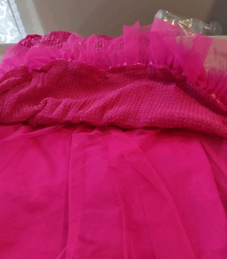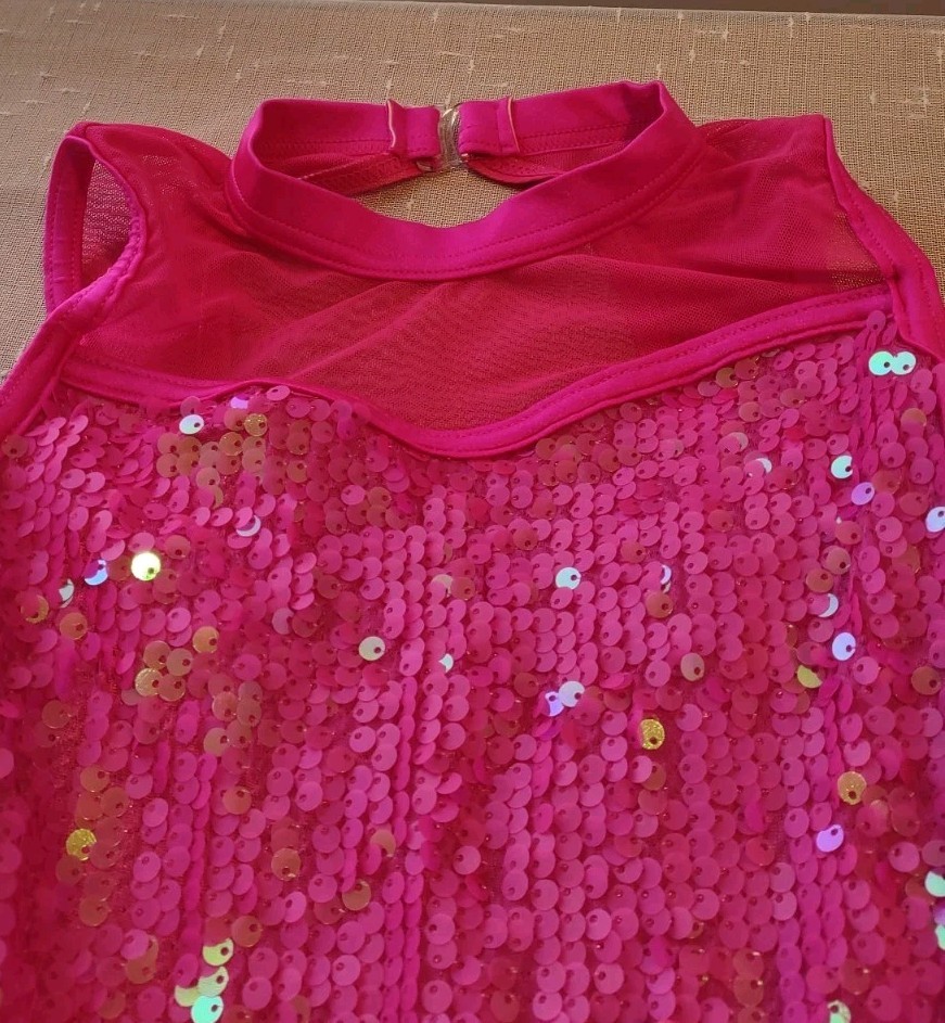 как выглядит Weissman Girls Dance Costume Hot Pink Sequins Feathers MC New фото