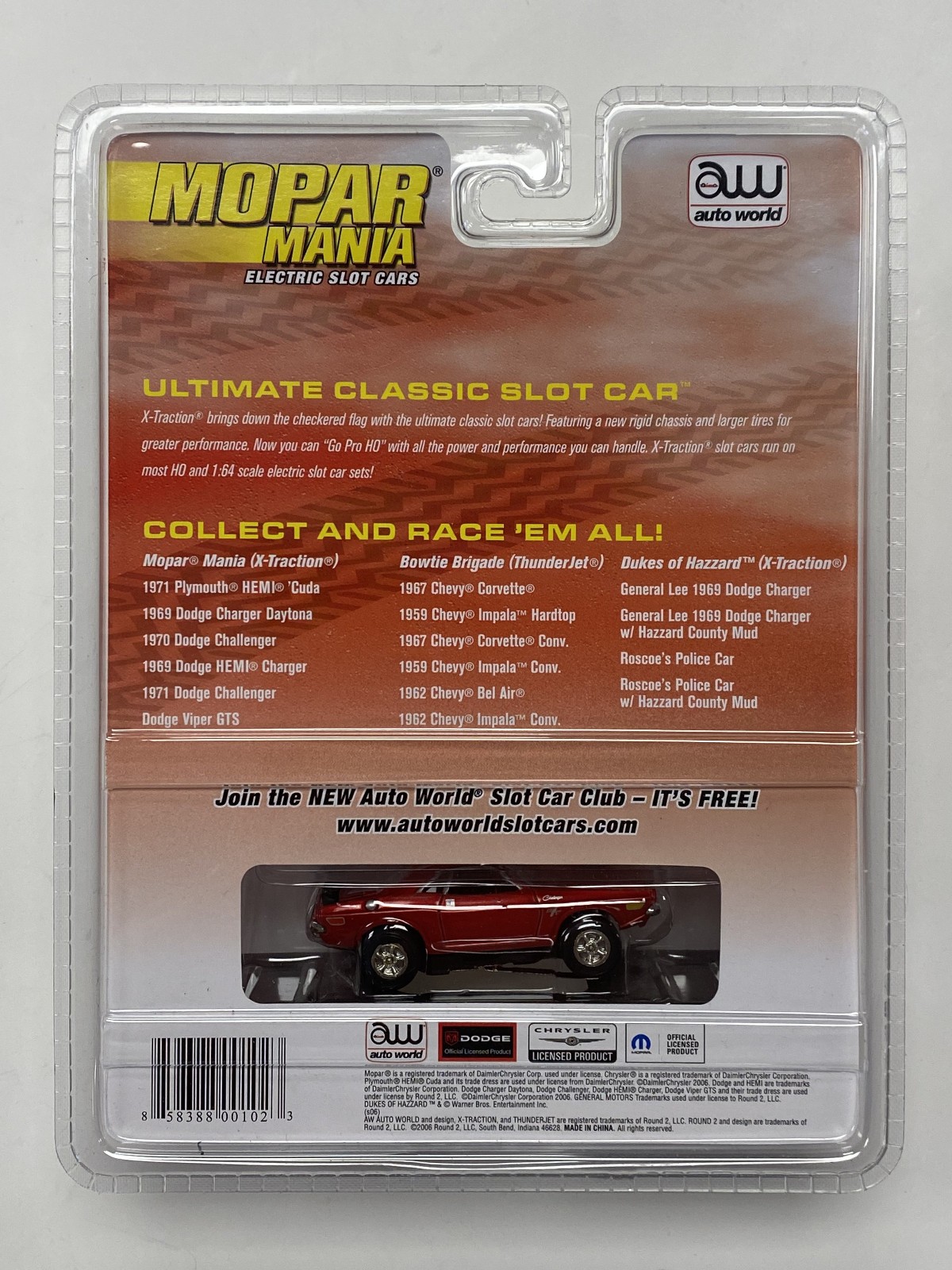 AW 1971 Dodge Challenger Slot Car in Red - SEALED NEW - Mopar Mania Auto World
