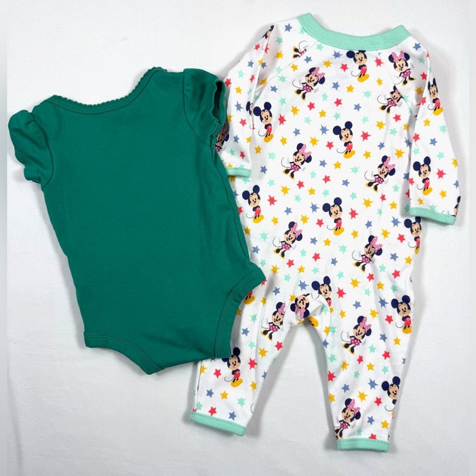 DISNEY Baby Bodysuit Footed Sleeper Set 0 3M Minnie Mouse Mickey Stars Holiday
