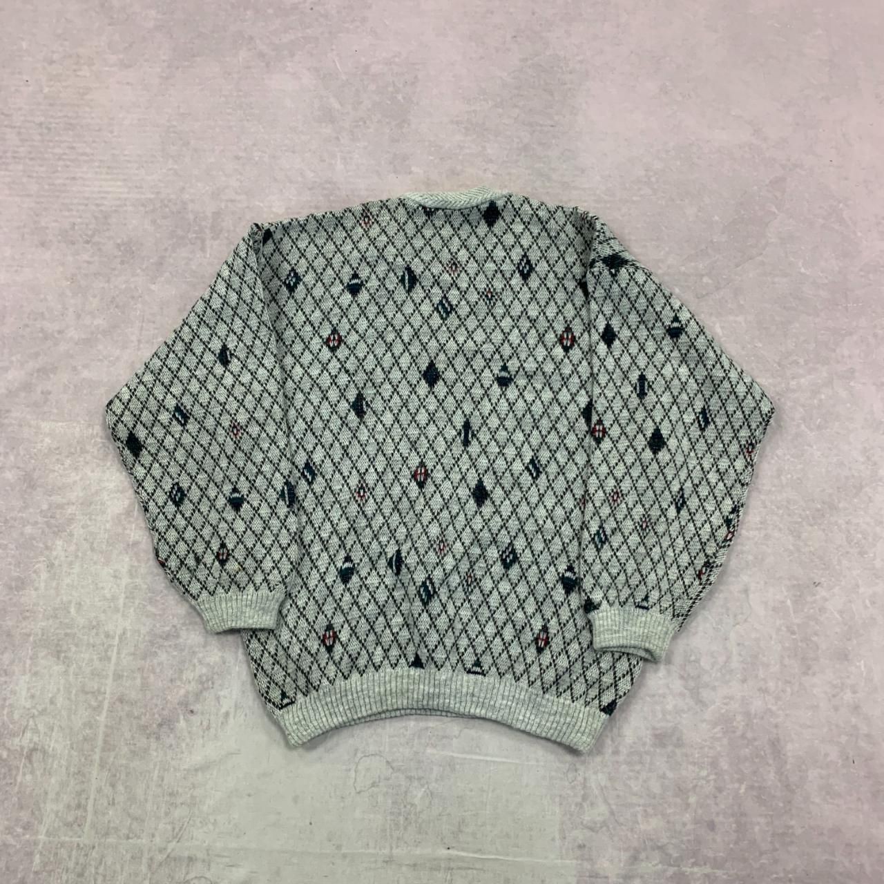 как выглядит Vintage abstract knitted jumper Patterned Grandad chunky knit sweater Mens L фото