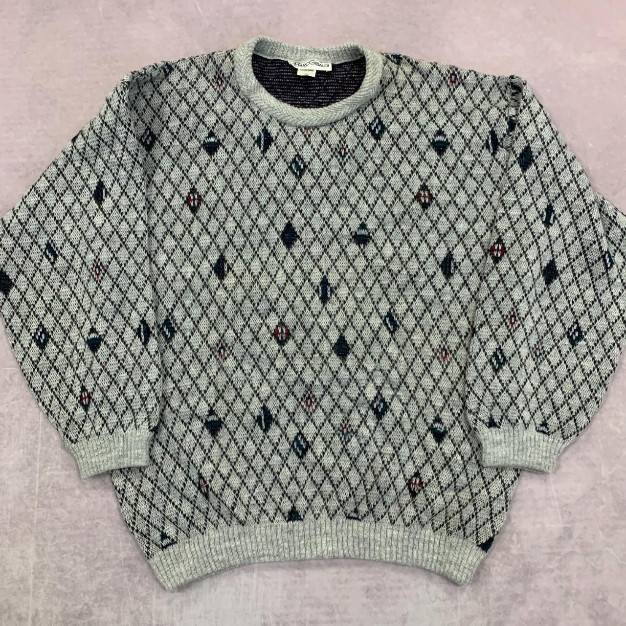 Vintage abstract knitted jumper Patterned Grandad chunky knit sweater Men's L