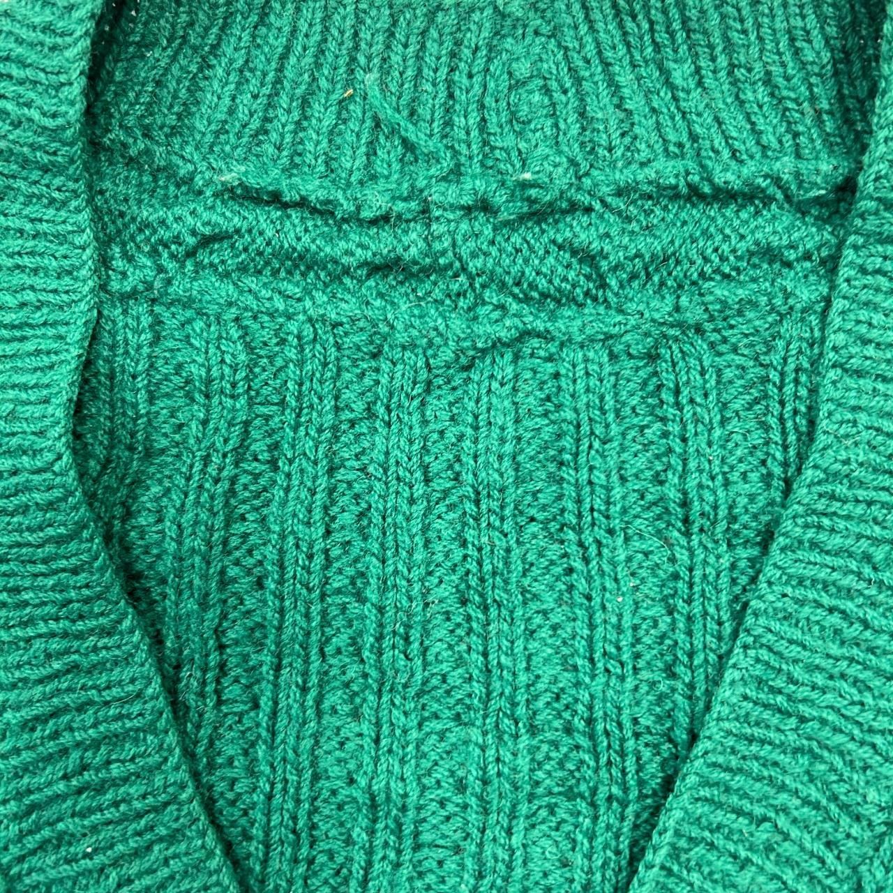 как выглядит Vintage knitted jumper Patterned chunky knit v-neck sweater Womens L 16-18 фото