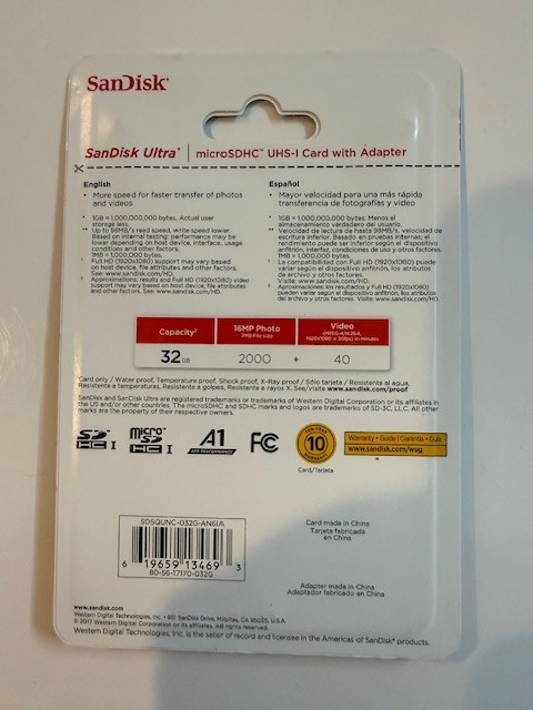 SanDisk Ultra 32GB microSDHC UHS-I Memory Card with Adapter 98mb/s