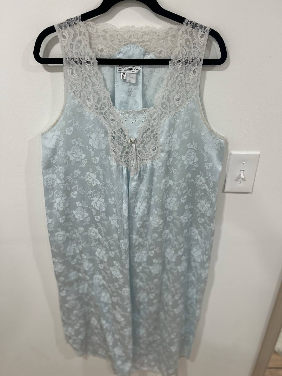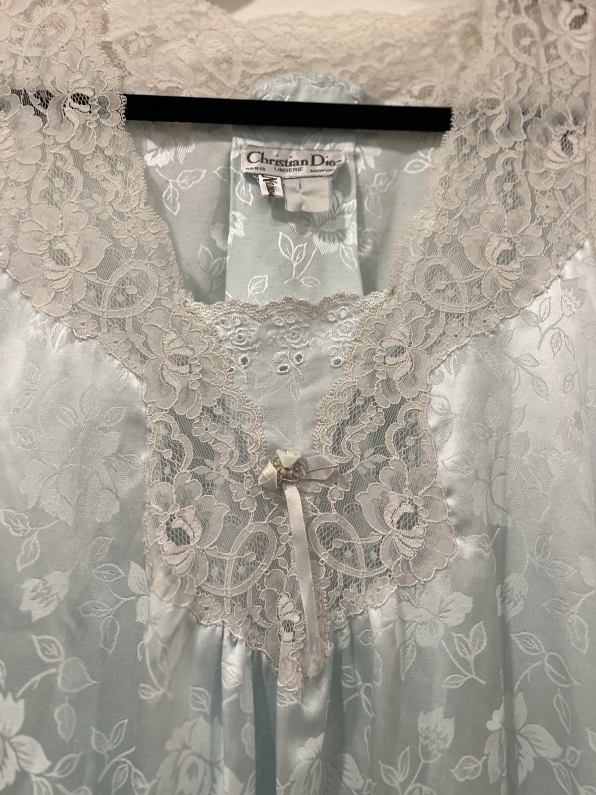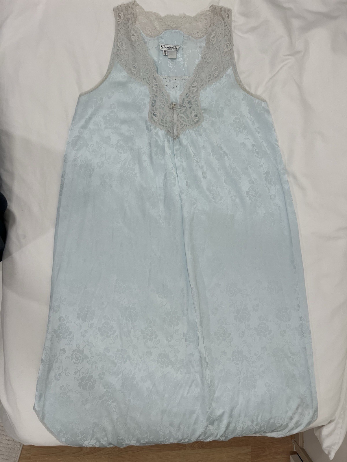 как выглядит Vintage Christian Dior Lingerie Blue Floral Jacquard Lace Slip Nightgown M/L фото