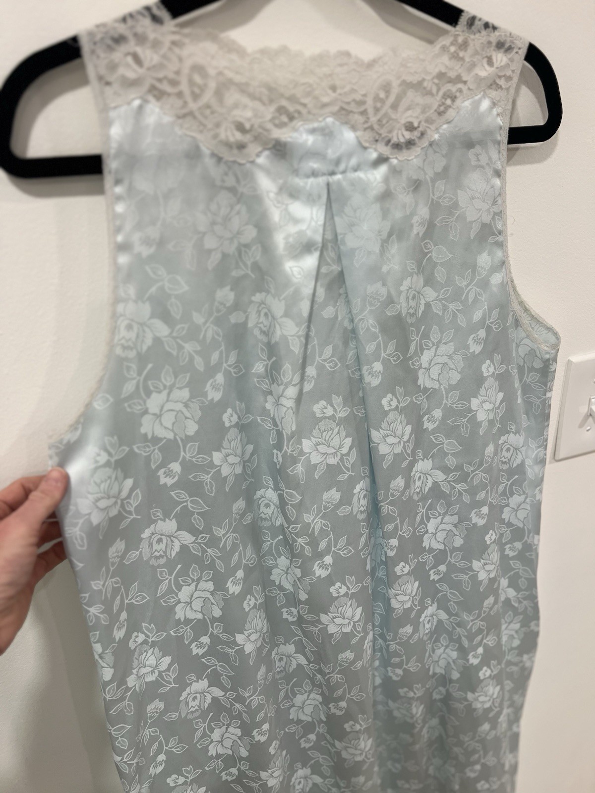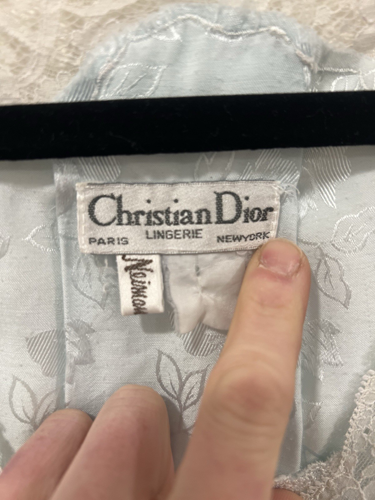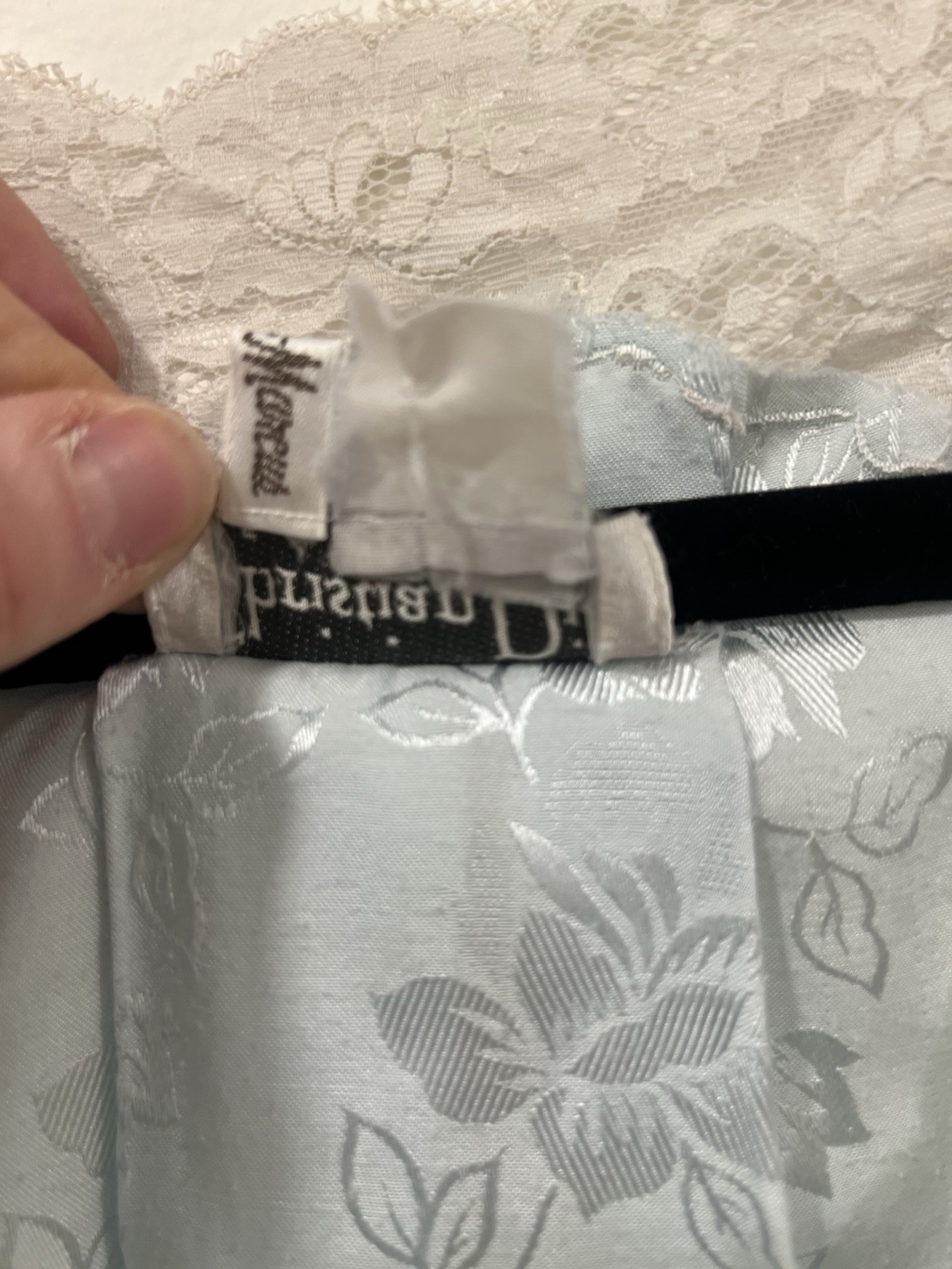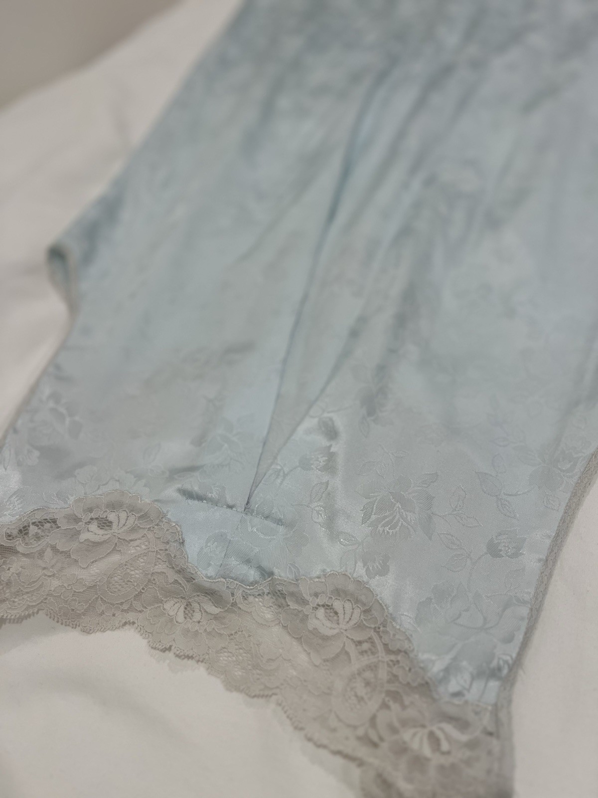 как выглядит Vintage Christian Dior Lingerie Blue Floral Jacquard Lace Slip Nightgown M/L фото