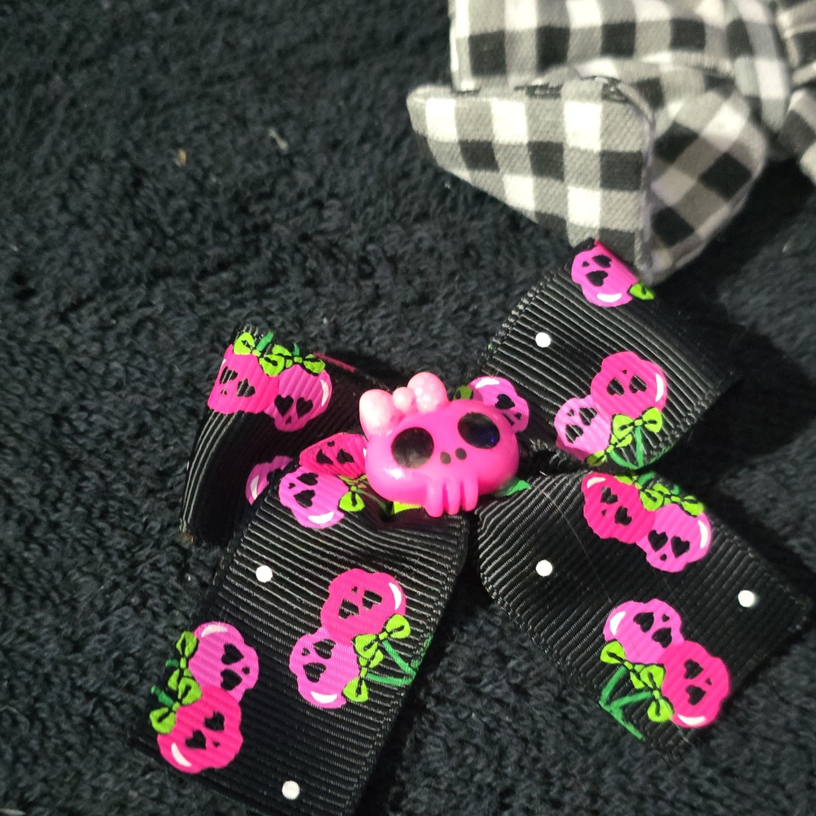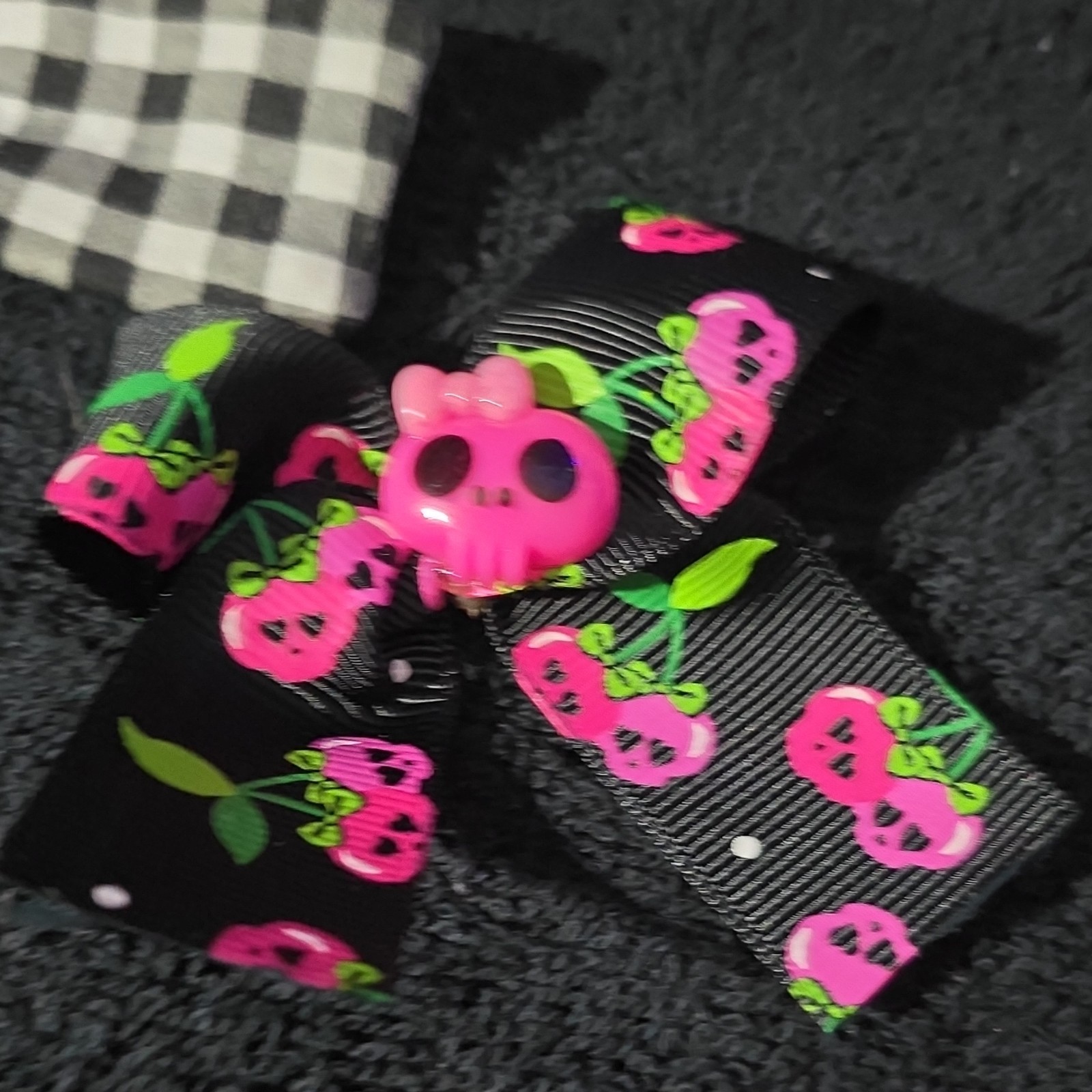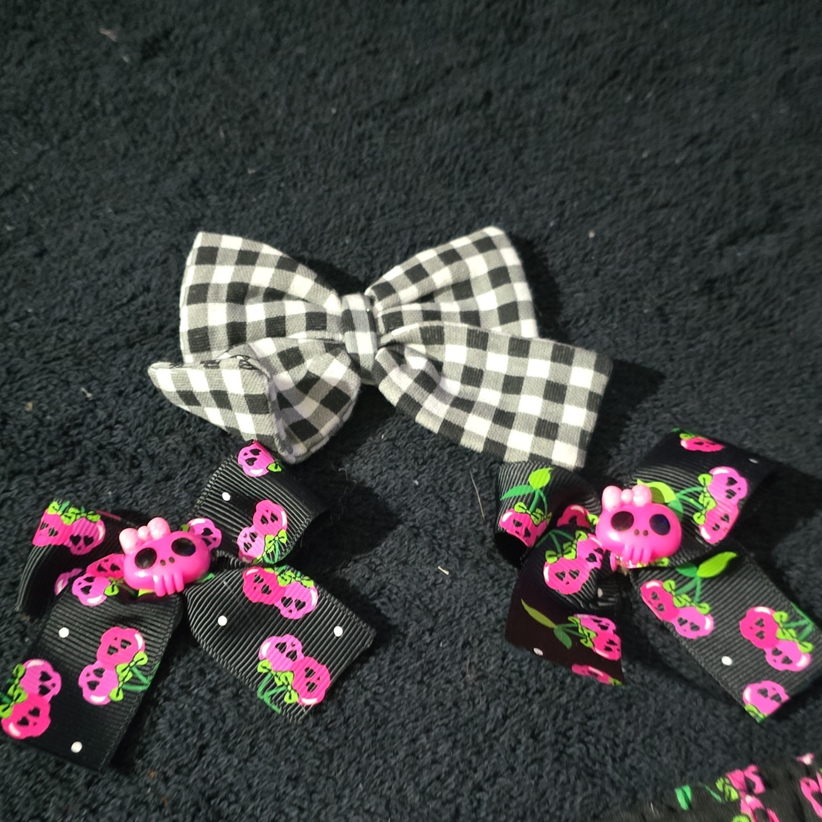 Girls Handmade Bow Hair Clip Headband Set Black Pink Check Fruit Polka Dot
