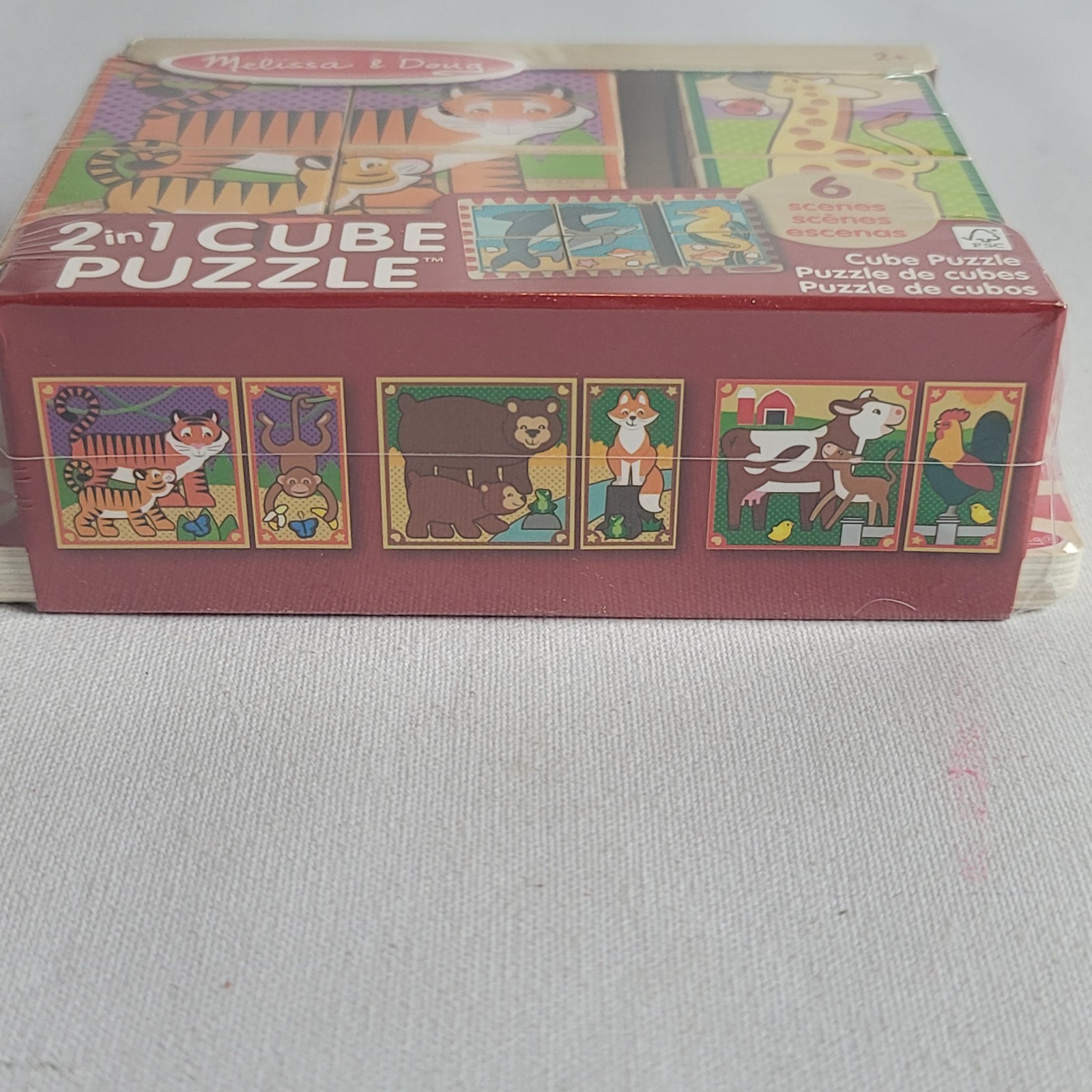 Melissa Doug 2 In 1 Wooden Cube Puzzle Animals , 6 Scenes, Item 50274/New