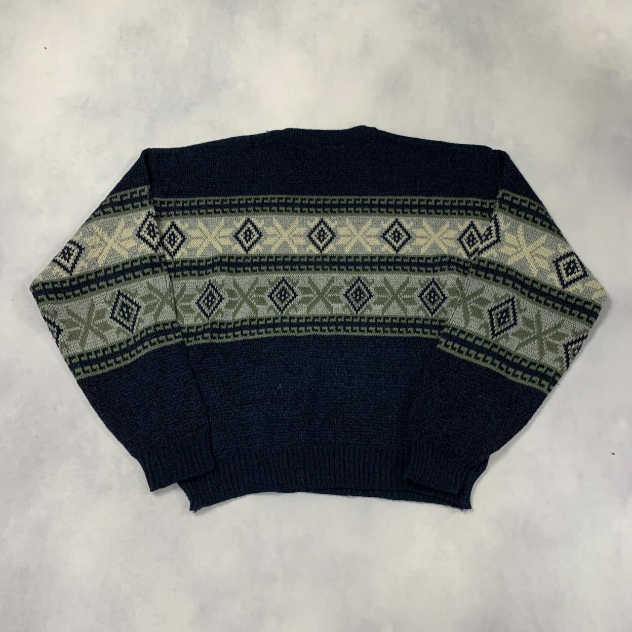 как выглядит Vintage Knitted Jumper Abstract Patterned Grandad Knit Sweater Men