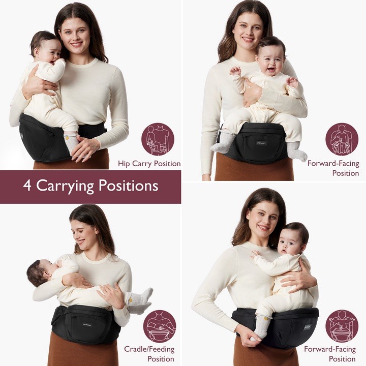 Momcozy Hip Seat Baby Carrier Large , Adjustable Waistband Pockets Black