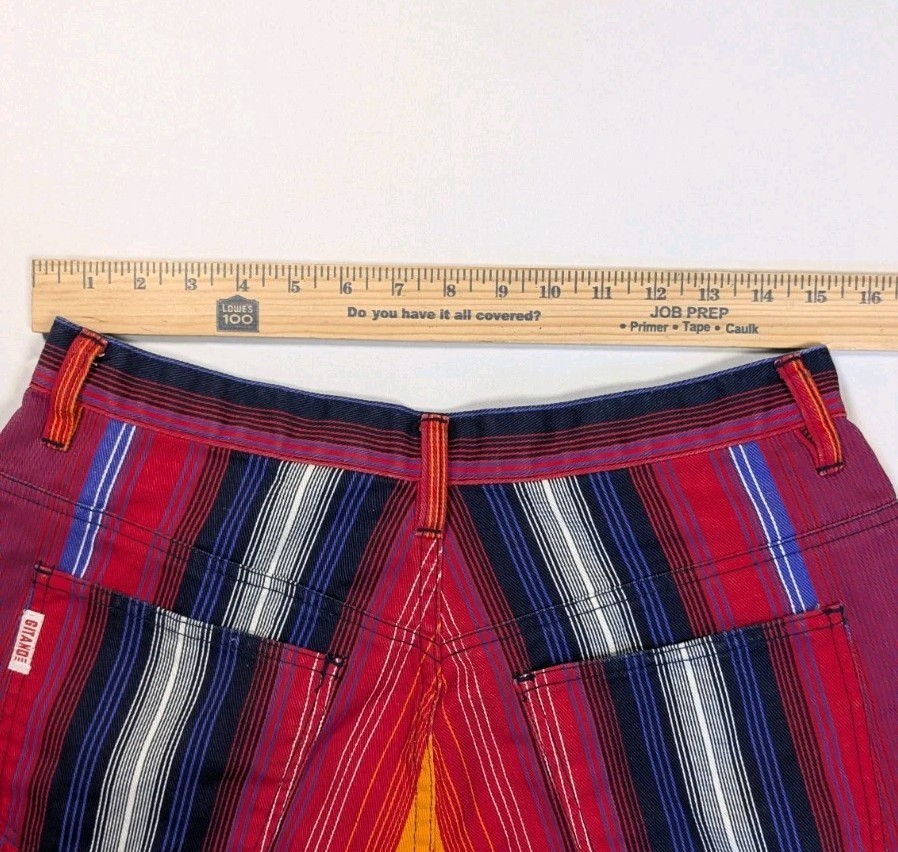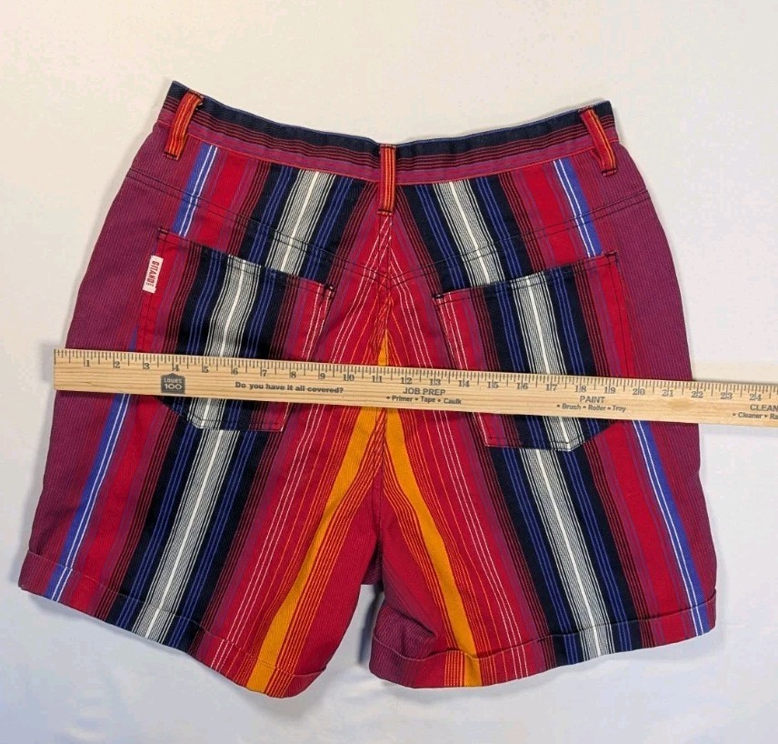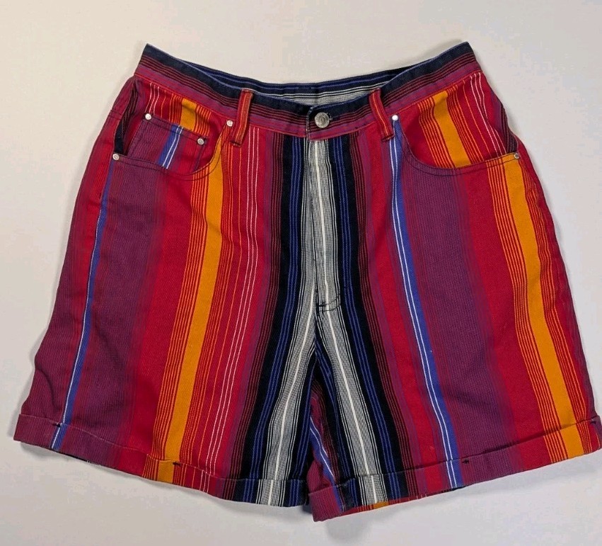 как выглядит Vtg Gitano 80s Fiesta Rainbow Baja Surfer Striped Jean Shorts Women
