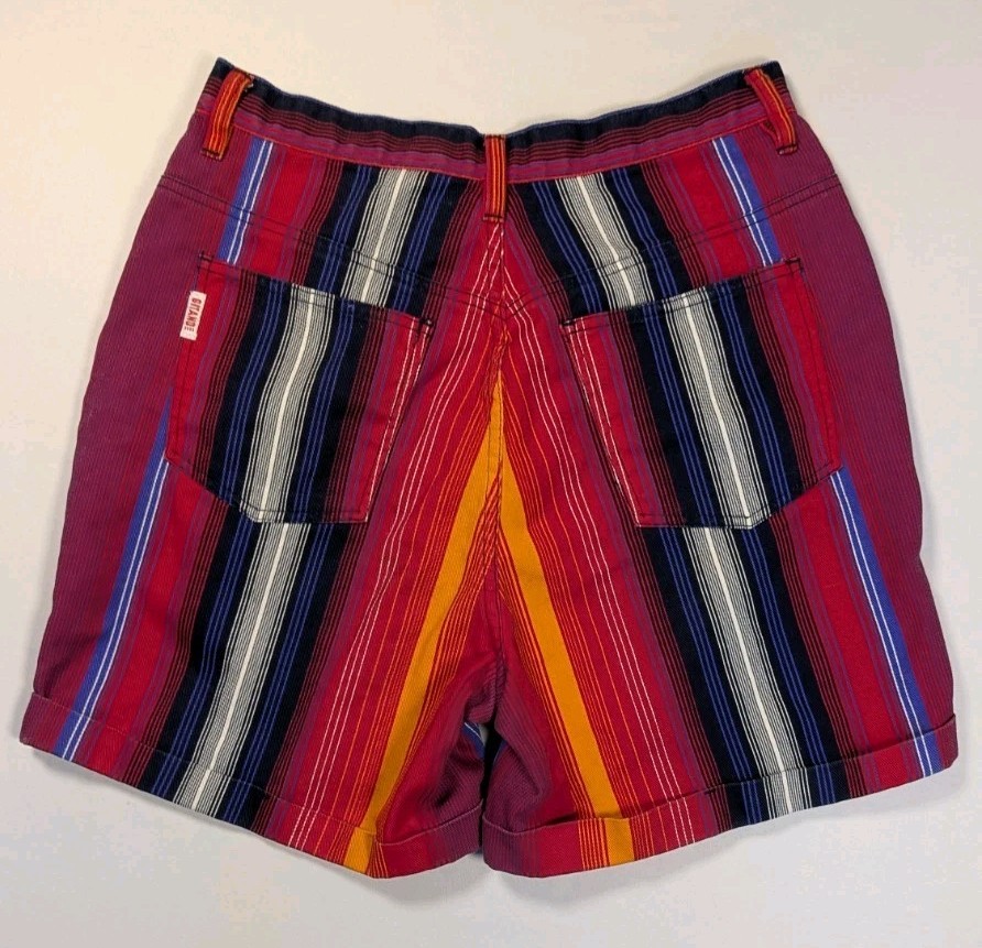 Vtg Gitano 80s Fiesta Rainbow Baja Surfer Striped Jean Shorts Women's 12/14 NOTE