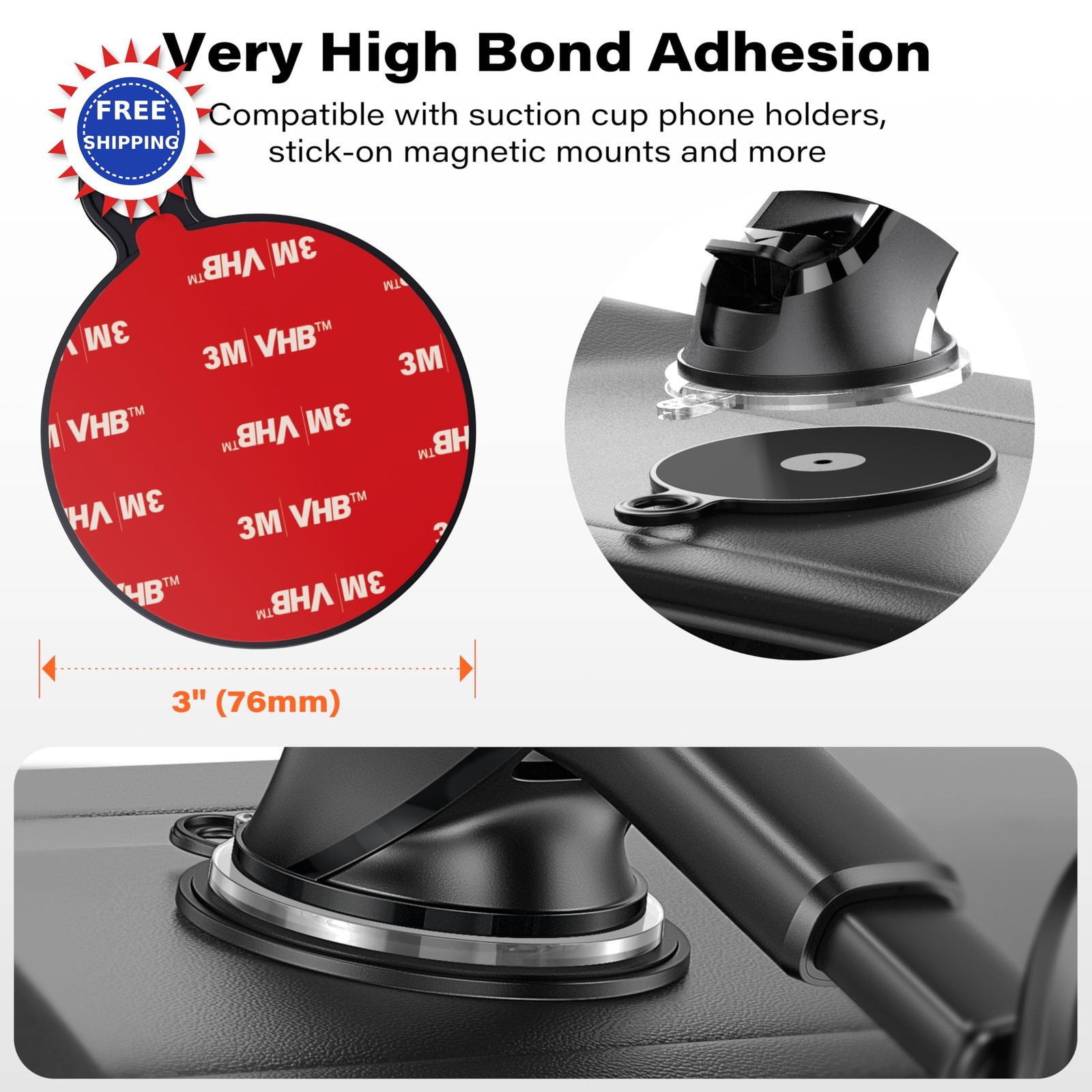 APPS2Car Dashboard Pad Mounting Disk for Suction Cup Phone Mount 3Pcs 3 76mm