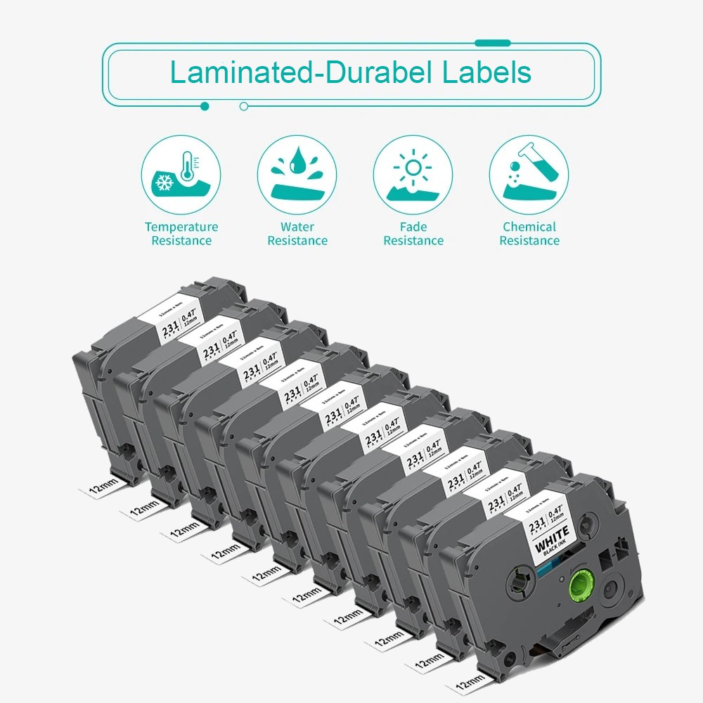 10PK For Brother P-Touch TZe-231 TZ-231 12mm White Standard Laminated Label Tape