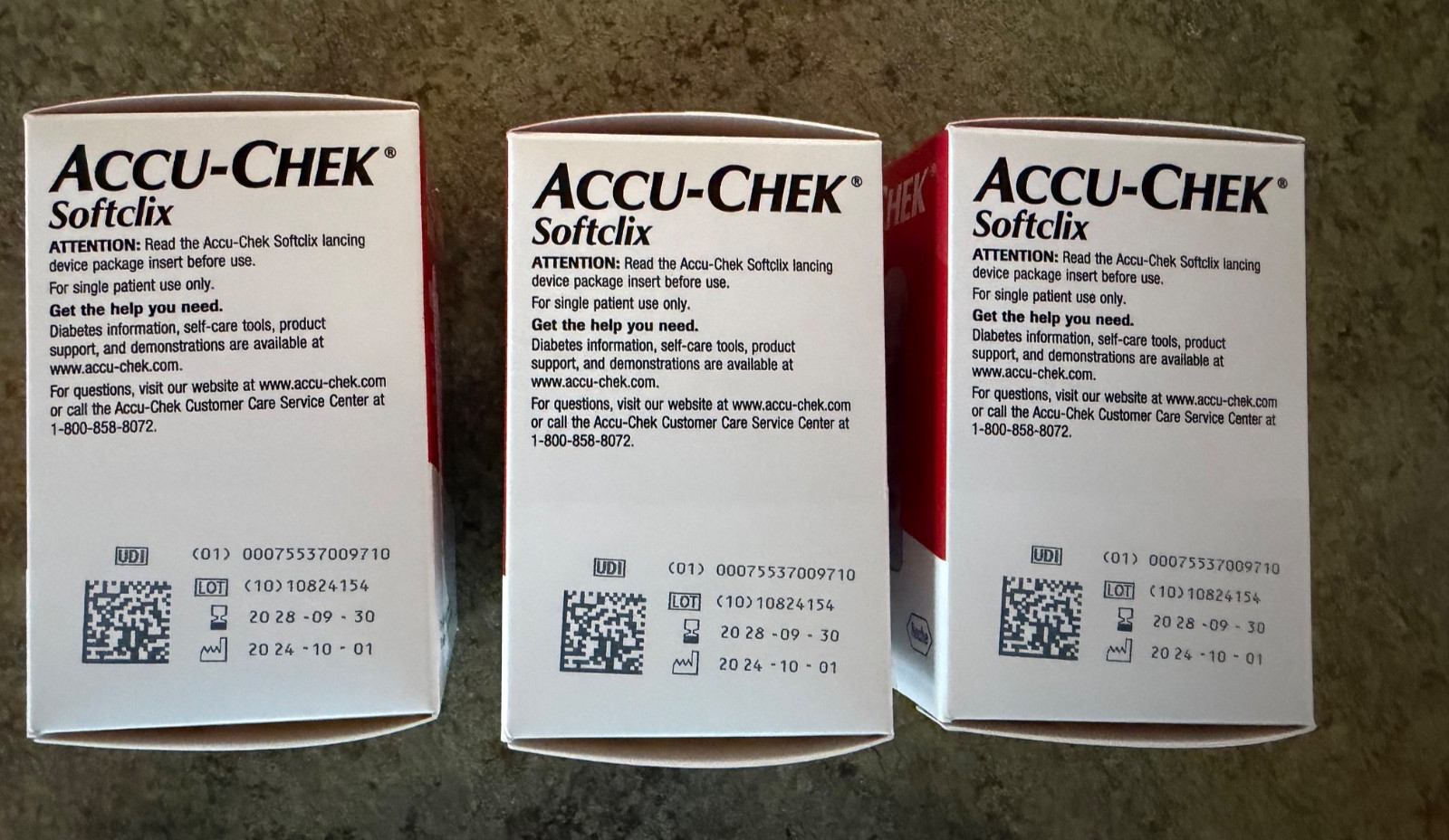 3 Boxes NEW ACCU-CHEK SOFTCLIX LANCETS 100 per Box Sealed-Use by Sept 2028