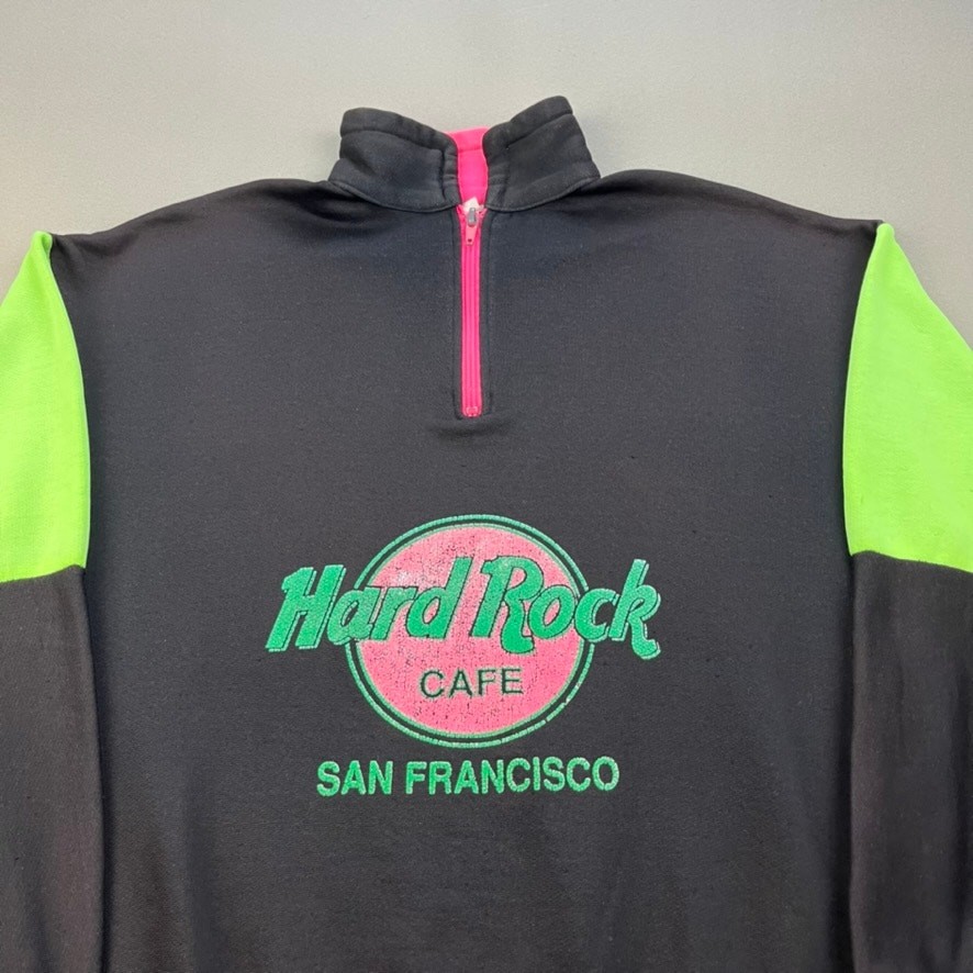 Vintage Hard Rock Cafe Sweatshirt Adult Medium Black Neon San Francisco 1/2 Zip