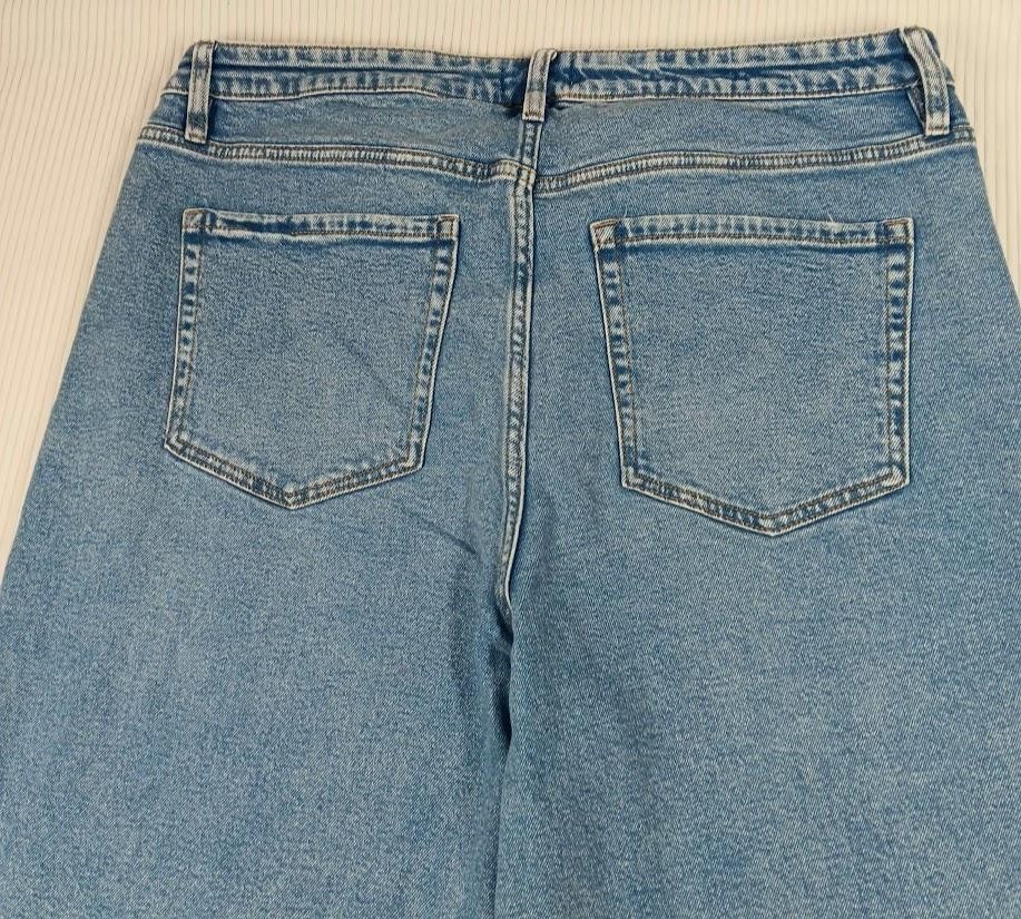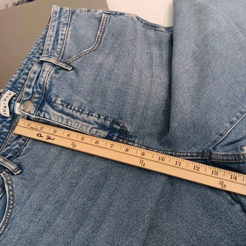 как выглядит Ava Viv Jeans Womens 17 Blue High Rise Wide Leg Cropped Stretch Denim Pants фото