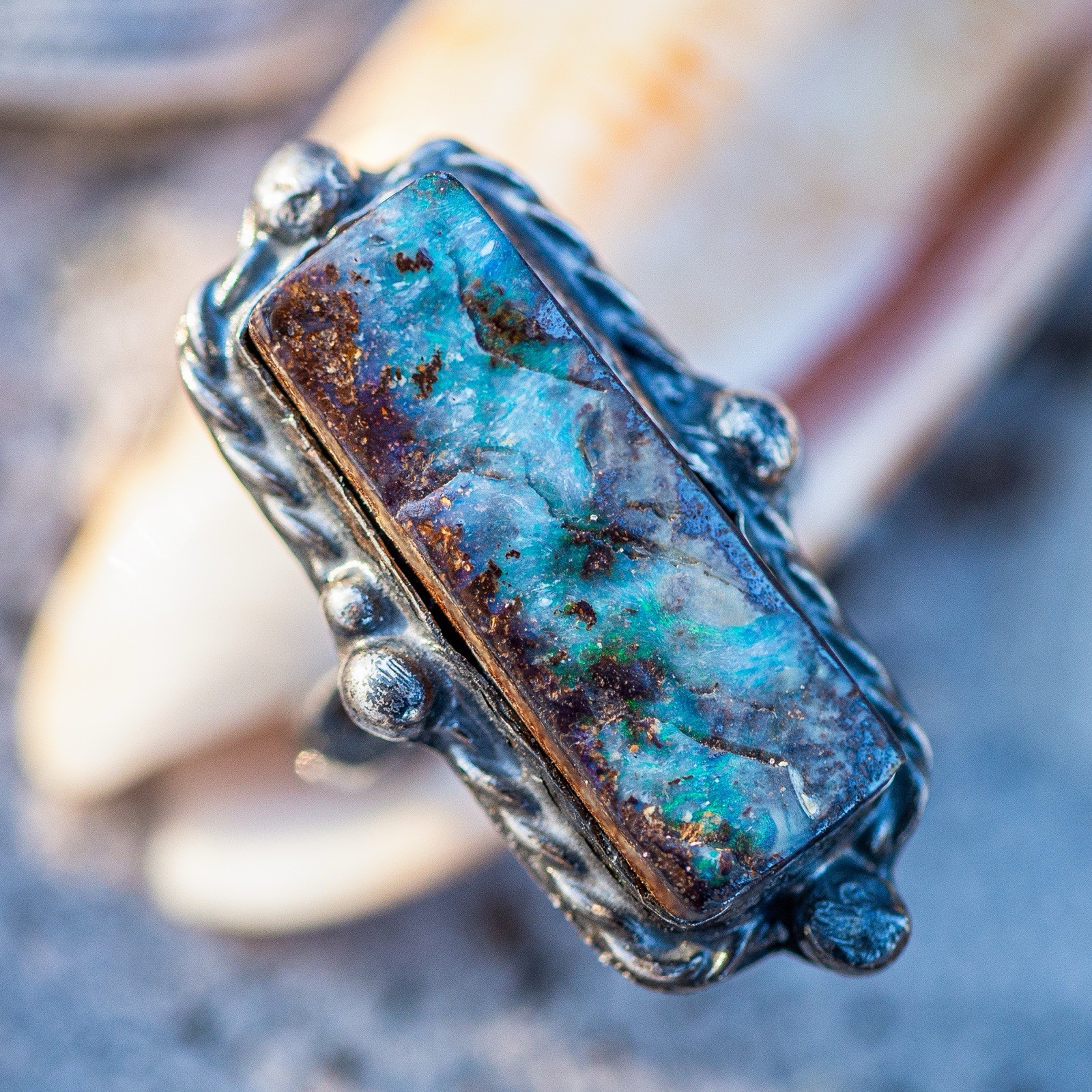 как выглядит Sterling Silver And Australian Seam Opal Ring Size 7 3/4. фото