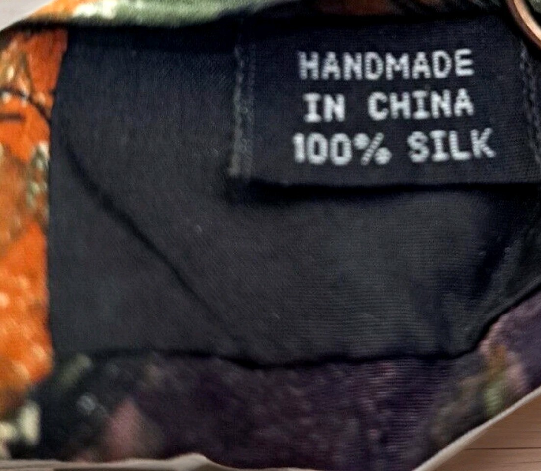 как выглядит Geoffrey Beene Silk Tie Artistic Abstract Floral Green Orange Purple Handmade фото