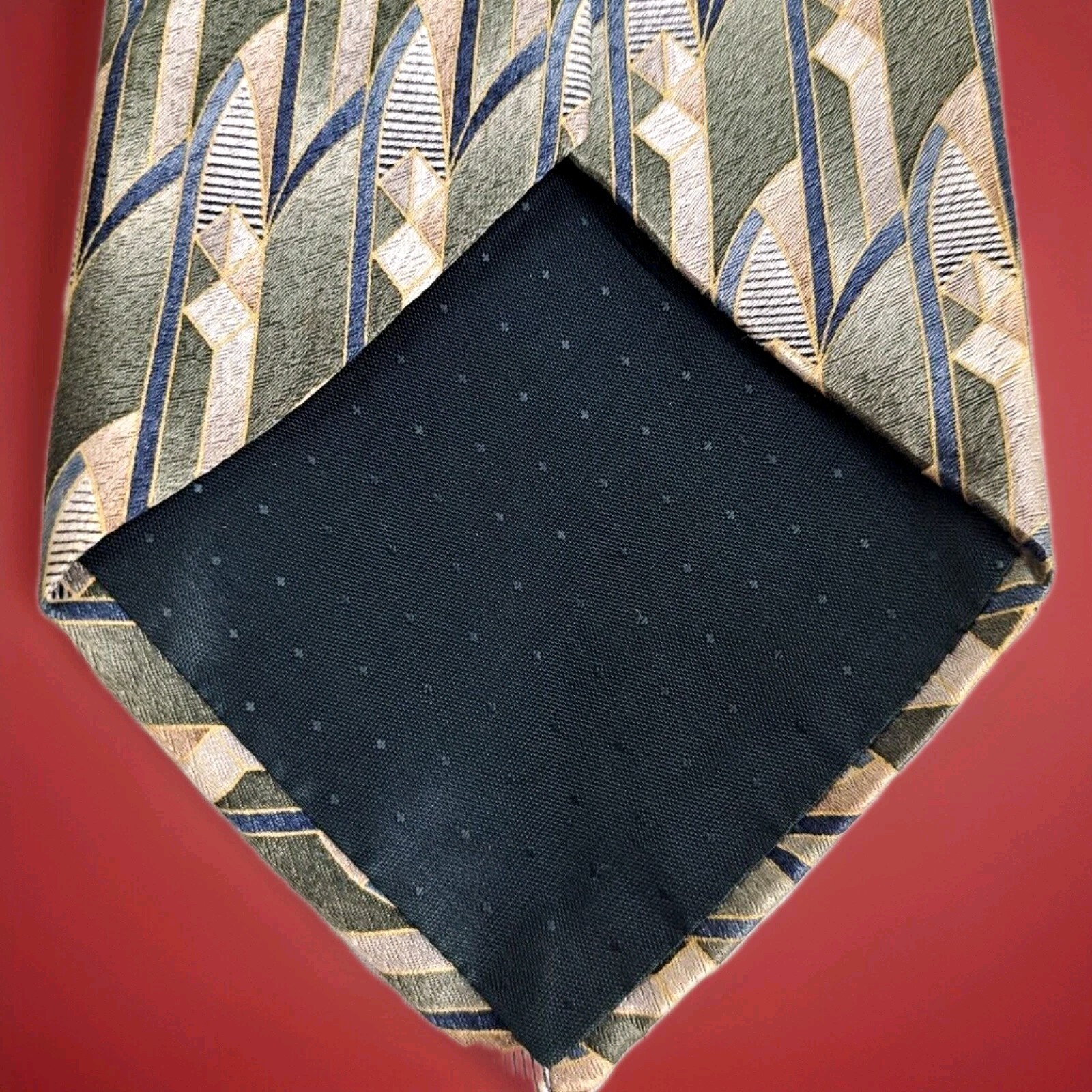 Stafford 100 Silk Tie Green Blue Geometric Art Deco Pattern Classic Business